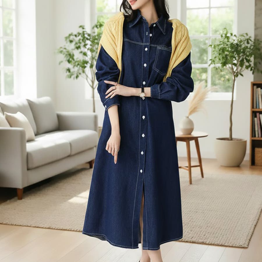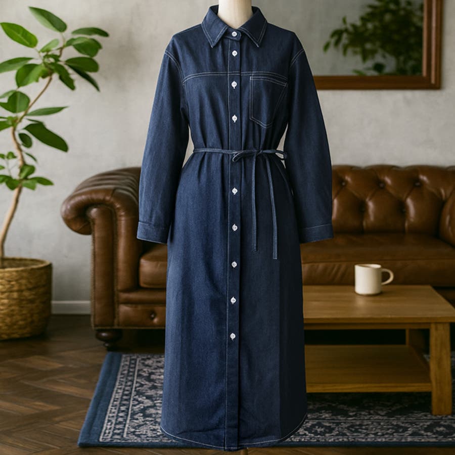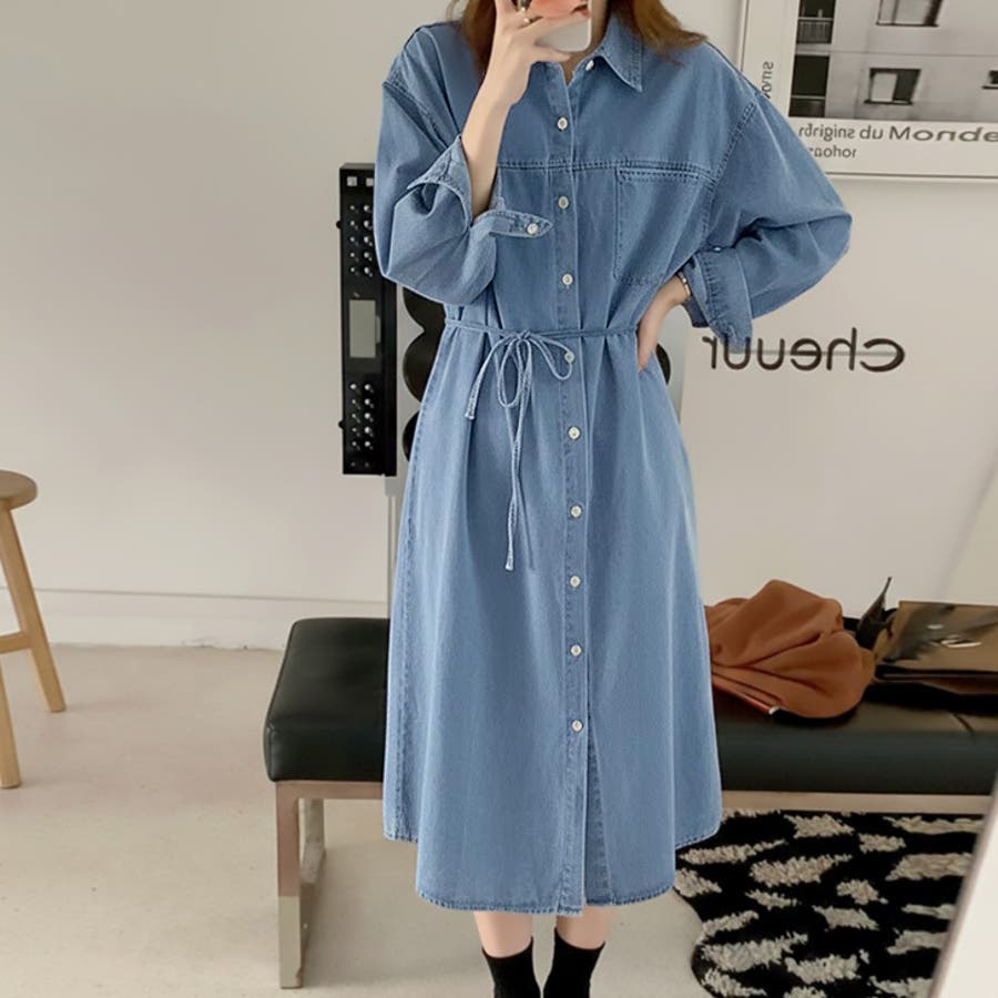 【17648】デニムシャツワンピース