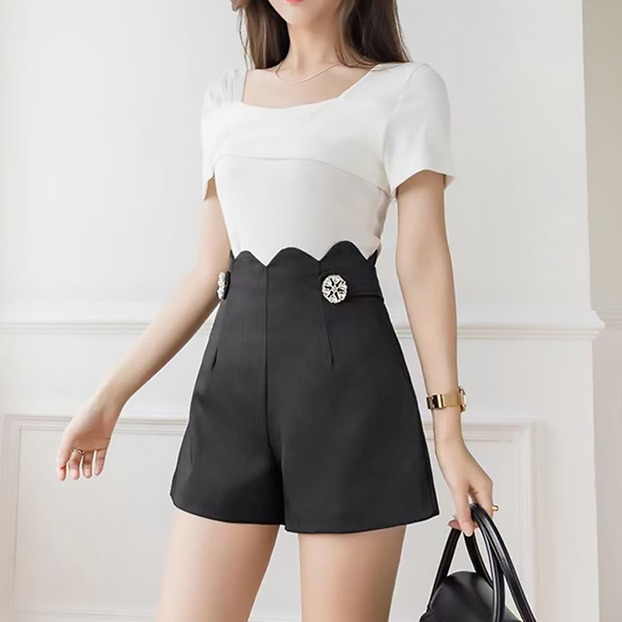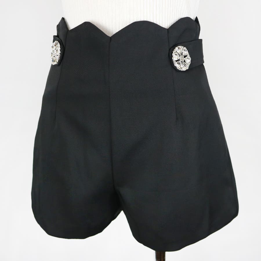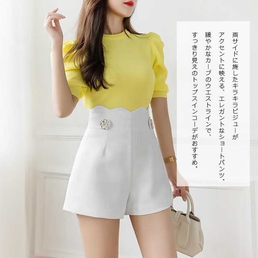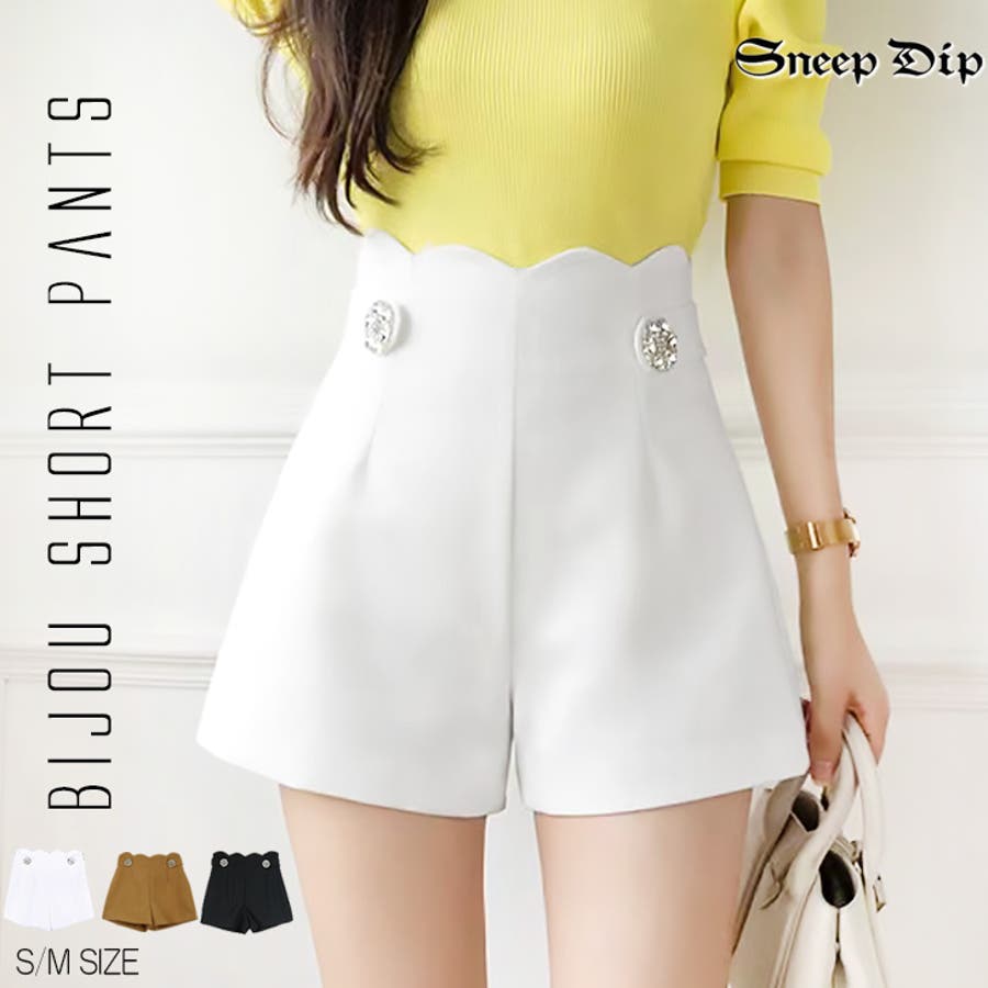 | 商品番号: 6110 商品名: キラキラビジューショートパンツ 商品説明: 両サイドに施したキラキラビジューがアクセントに映える、エレガントなショートパンツ。緩やかなカーブのウエストラインで、すっきり見えのトップスINコーデがおすすめです。 |