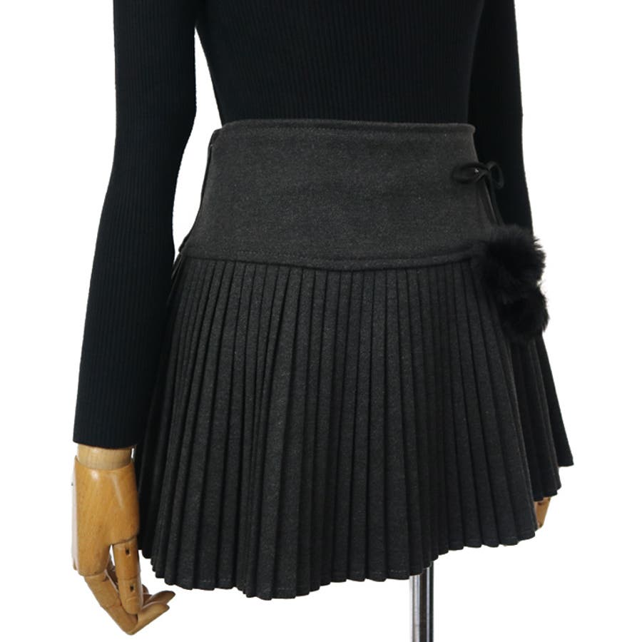 【6140】ボンボンファー×プリーツminiスカート
