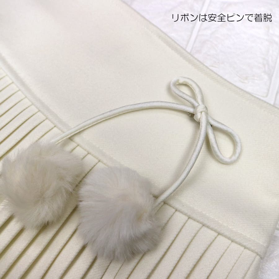 素材等 | 本体: ポリエステル100% 生地の伸縮性 : なし 生地の厚み : やや厚手 生地の透け感 : ホワイトあり 裏地 : あり/インナーパンツ その他 : サイドファスナー、ボンボンファーは安全ピンで着脱 |