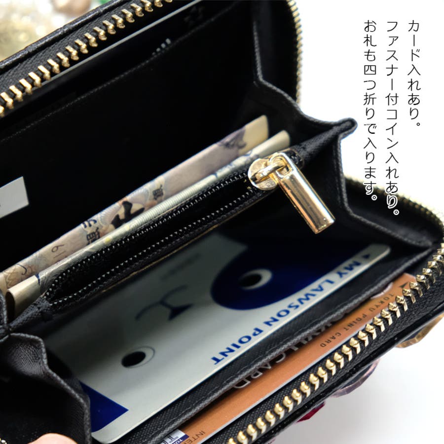 | 素材等 | 本体: フェイクレザー/合金 本体:ファスナーで開閉 コインケース:ファスナー付き カード入れ:2ヶ所 |