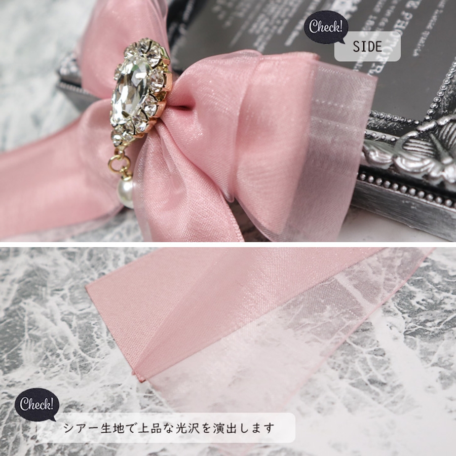 | 商品番号: 7073 商品名: ビジューリボンブローチ 商品説明: キラキラビジューとパールのリボンブローチ。艶やかなサテンとオーガンジーのコンビが上品なアクセです。落ち着いた美しい光沢がアクセントに♪安全ピンで着脱するデザインで、気軽に使えるのも嬉しいポイント。へアクセとしても◎ |
