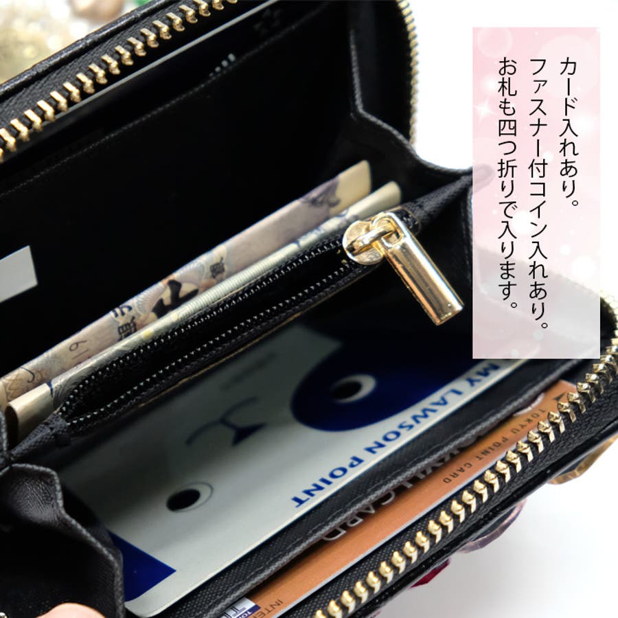 | プチサイズのデコウォレット。カラフルなビジューがポイントで、小さいけどコーデのワンポイントとしてしっかりアピールできます。 |