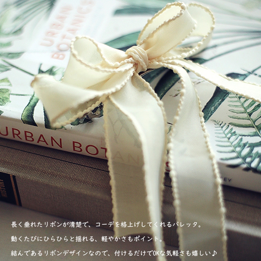 | 商品番号: 7083 商品名: ロングリボンバレッタ 商品説明: 長く垂れたのリボンが清楚で、コーデを格上げしてくれるリボンバレッタ。動くたびにひらひらと揺れる、軽やかさもポイント。結んであるリボンデザインなので、付けるだけでOKな気軽さも嬉しい♪ダブルリボンでシンプルすぎないエレガントリボンです。 |