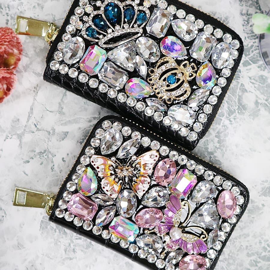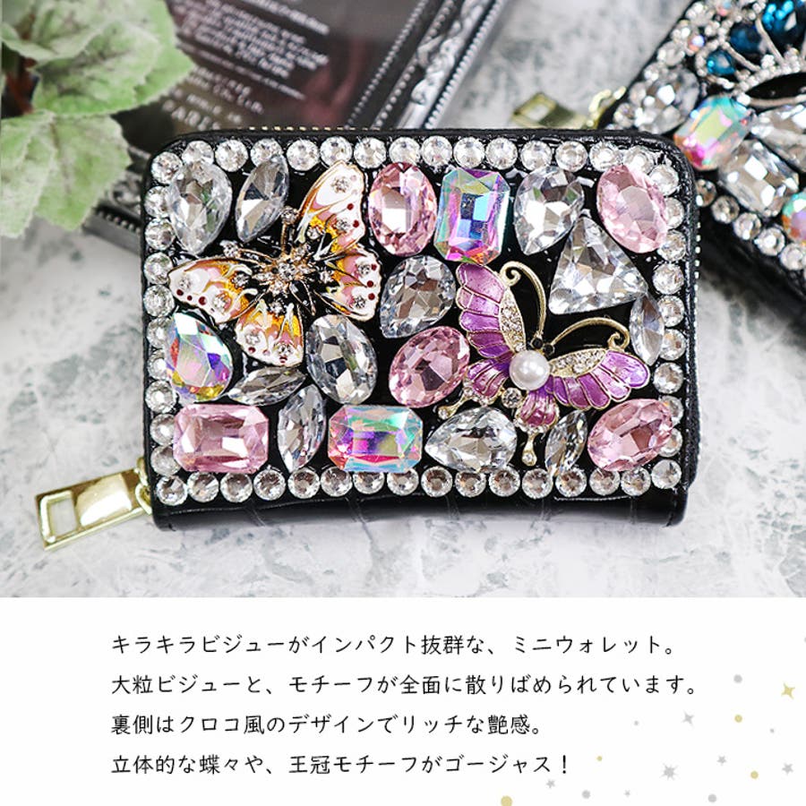 | ミニウォレットでもバツグンの存在感♪バタフライやクラウンのモチーフがキュートです。 |
