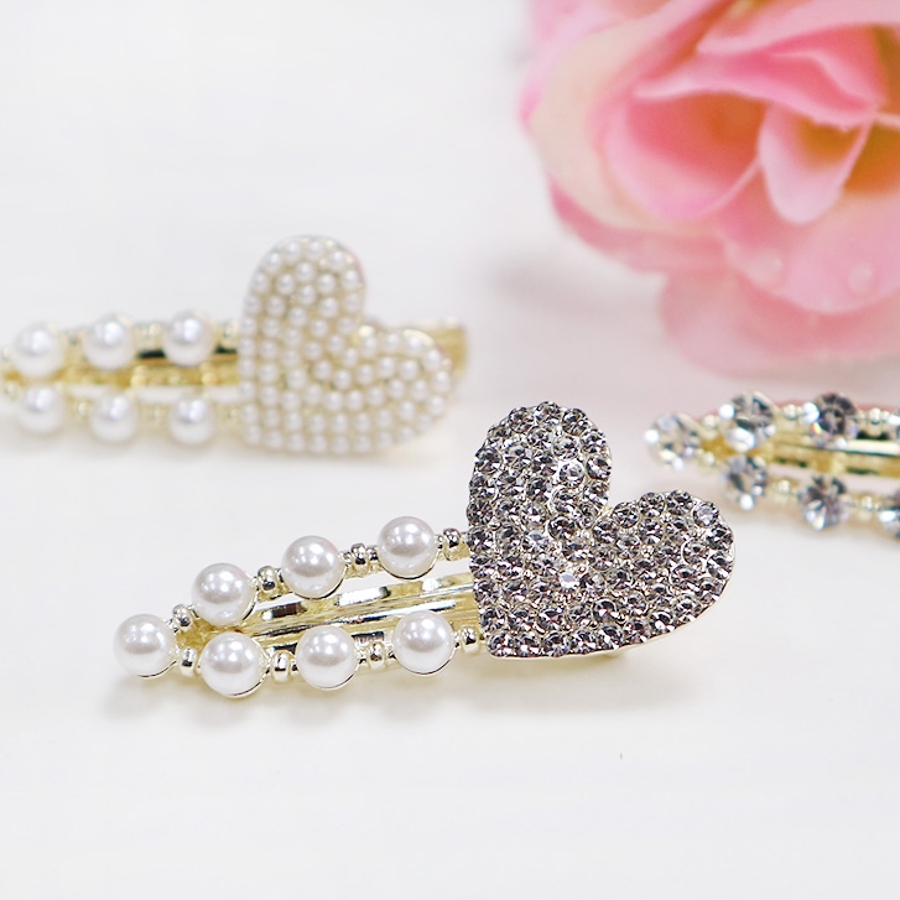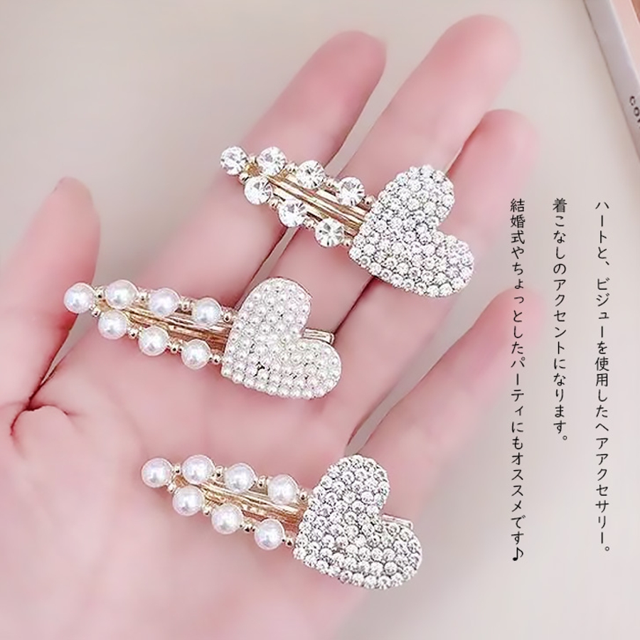| 商品番号: 7143 商品名: ハートモチーフヘアピン 商品説明: ハートと、ビジューやパールを使用したフェミニンなヘアアクセサリー。いつもの髪型にプラスするだけで着こなしのアクセントになります。結婚式やちょっとしたパーティにもオススメです♪ |