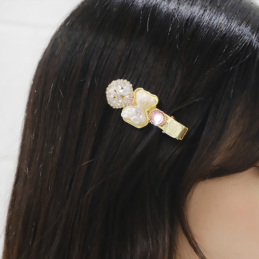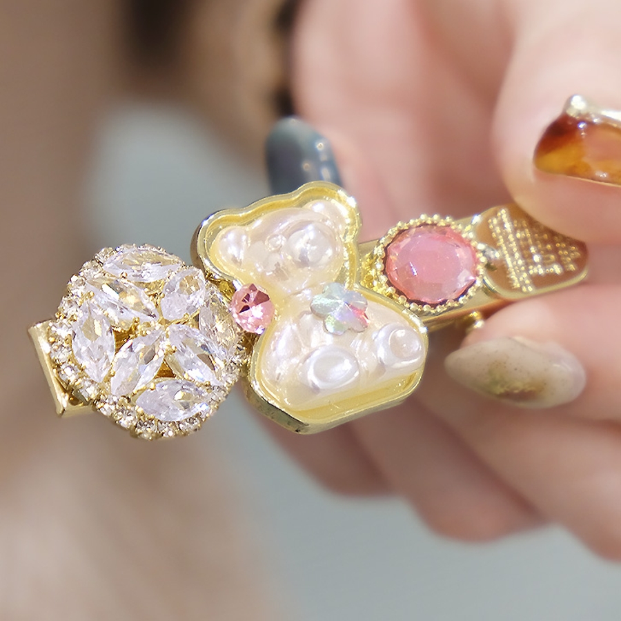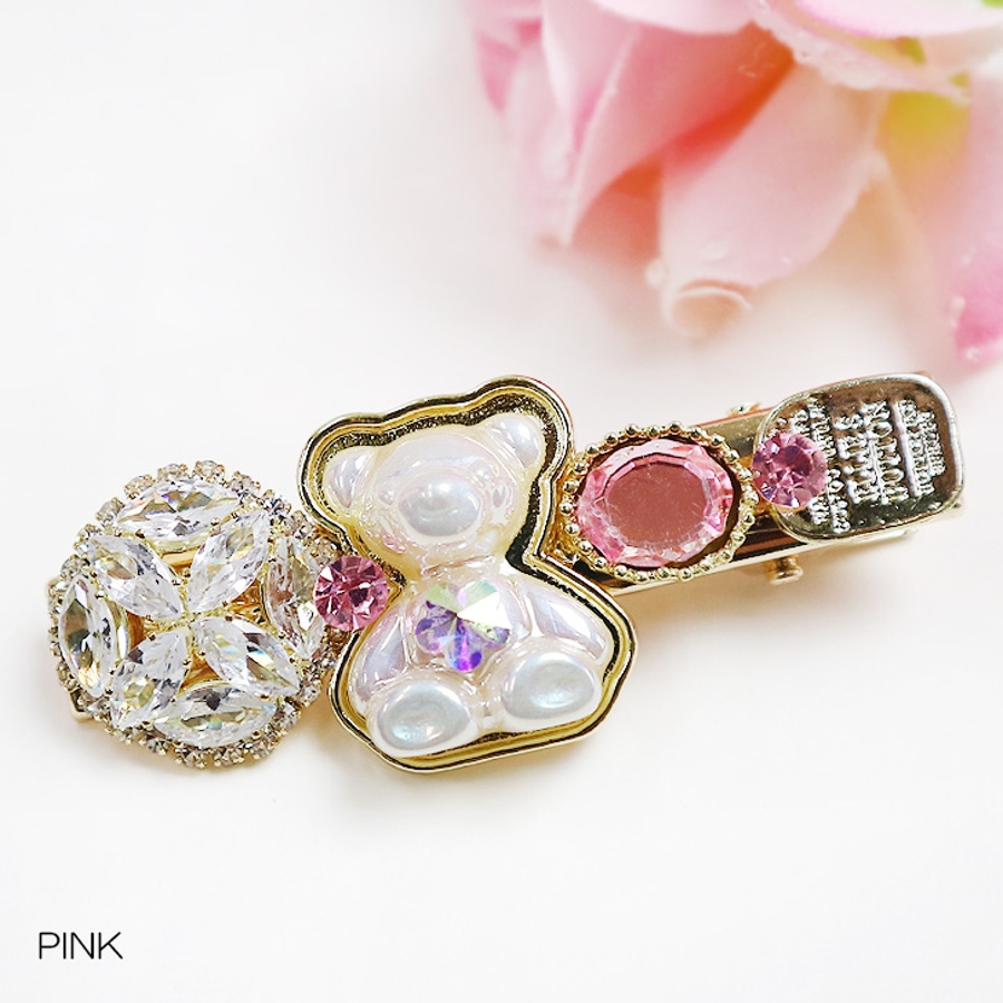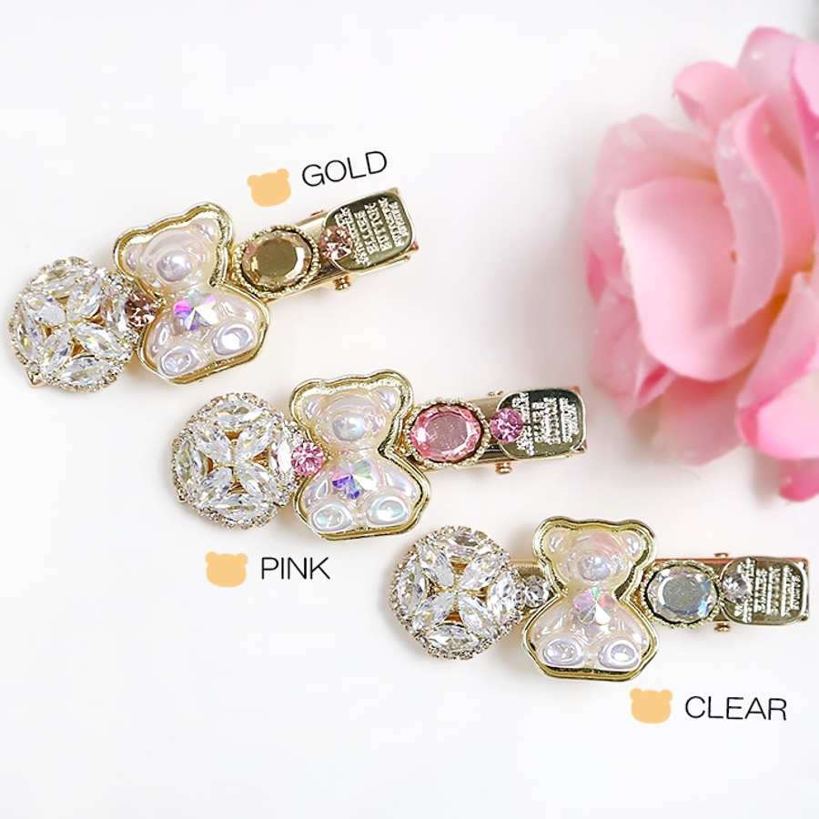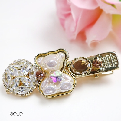【クリア】【7144】キラキラビジュー×ベアーヘアピン