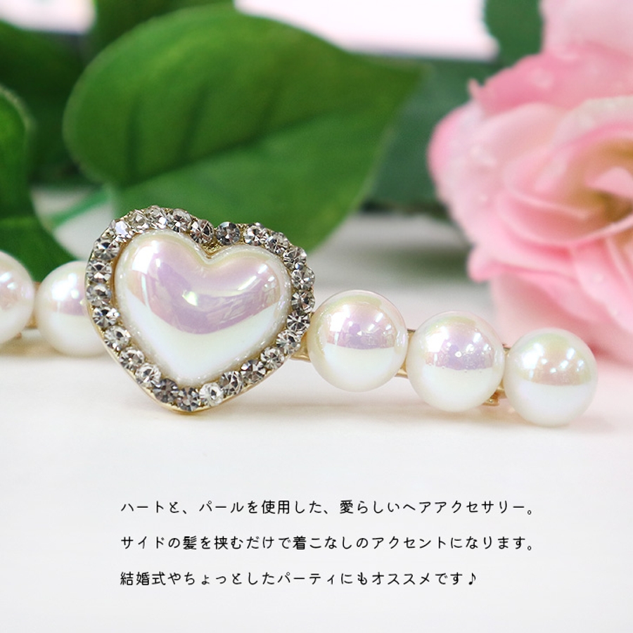 | 商品番号: 7155 商品名: ハート×パールヘアピン 商品説明: ハートと、パールを使用した、可愛さと上品さを兼ね備えたヘアアクセサリー。いつもの髪型にプラスするだけで着こなしのアクセントになります。結婚式やちょっとしたパーティにもオススメです♪ |