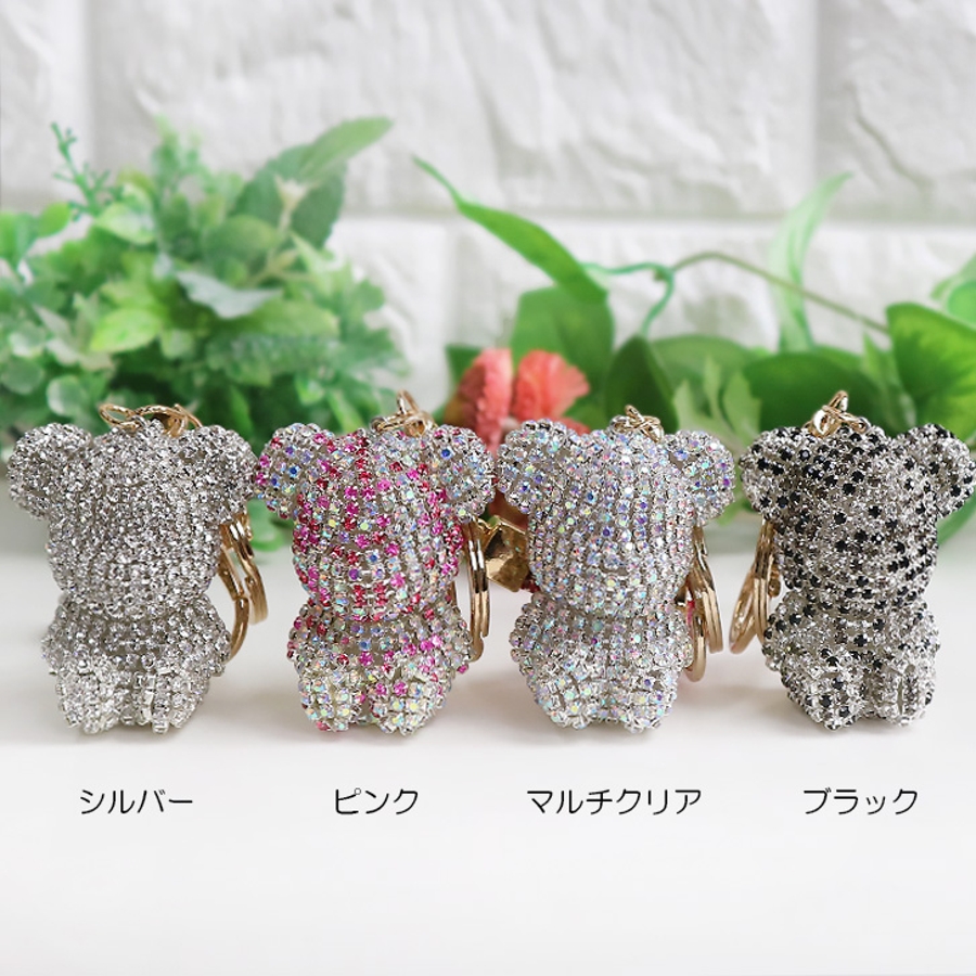 | 立体的なゴージャスキラキラクマチャーム。カラバリも豊富なので、おそろいで持ったり色違いでそろえてもかわいいですよ♪ |