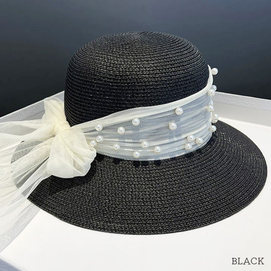 【7171】チュールリボンストローハット