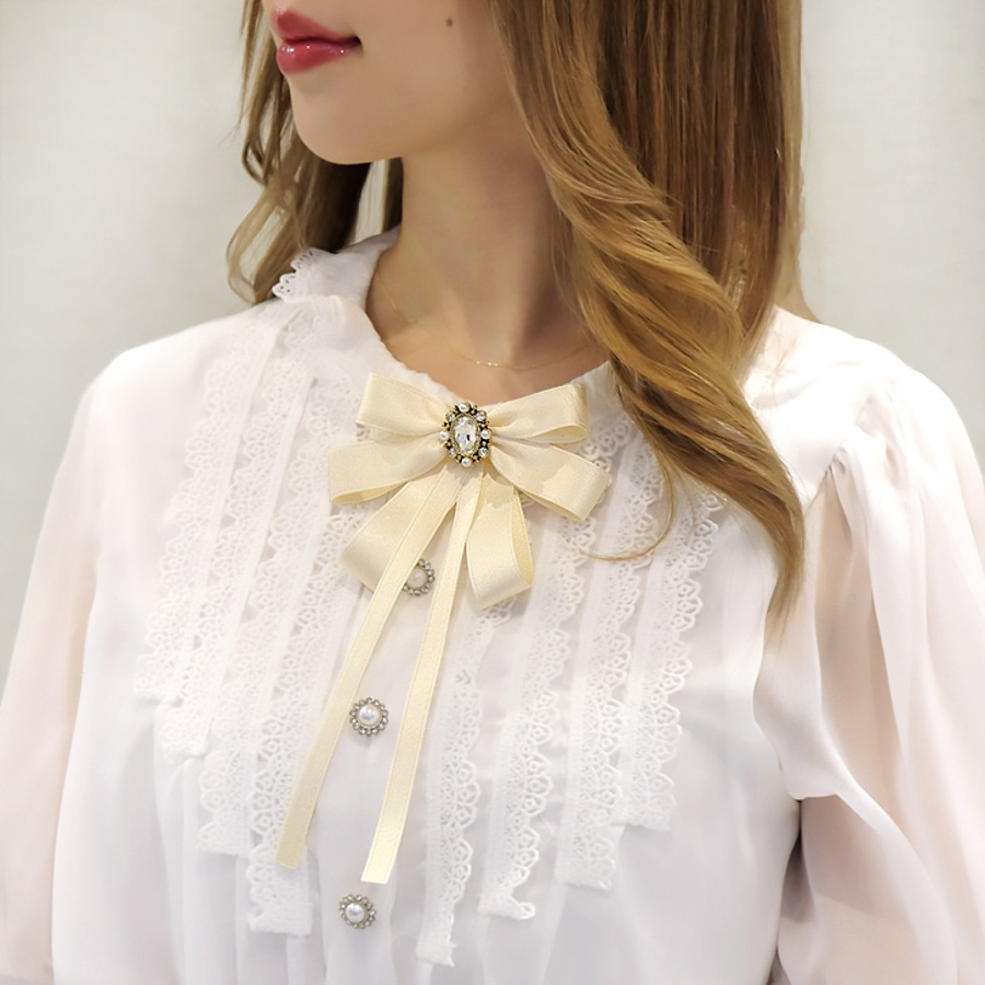 商品番号: 7174 商品名: リボンブローチ 商品説明: 細めのリボンがエレガントなビジューブローチ。光沢のあるサテン素材でコーデに品をもたらします。アイボリーはほんのり黄色ががったカラーなので、白いブラウスでもマッチします。安全ピンで着脱するデザインで、気軽に使えるのも嬉しいポイント。 |