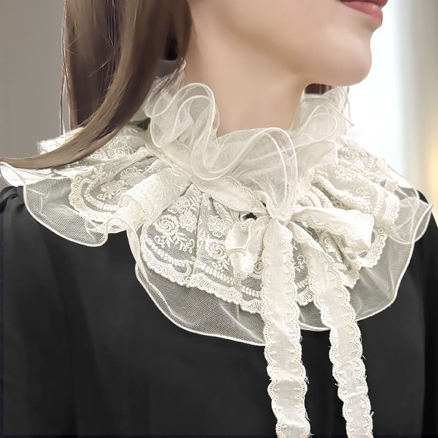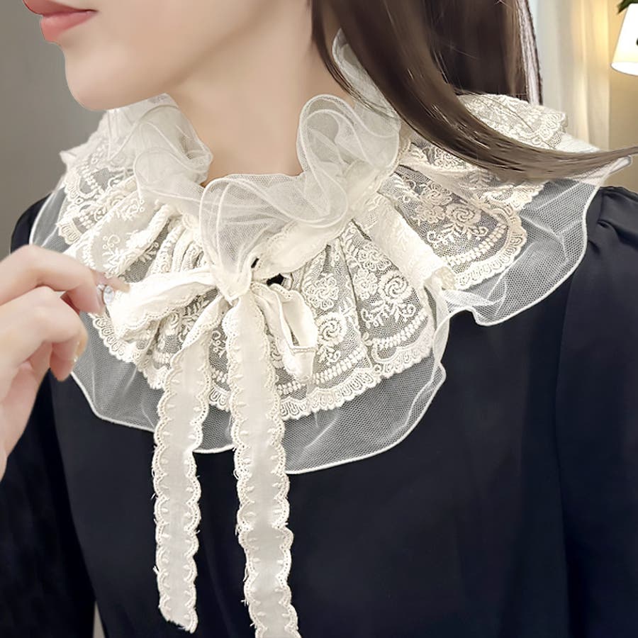 | 商品番号: 7236 商品名: 刺繍レースつけ襟 商品説明: フロントリボンで着脱のレトロレースの付け襟。繊細な刺繍襟は華やかなアクセントになり、いつもと違ったコーデを楽しめます♪セーラーカラーでバックスタイルもキュート!ナチュラルコットン素材で、レトロムードもますます高まります。ハイネックの立ち襟で、気になる首周りもカバーします。トップスからワンピまで、幅広く活躍します。 |