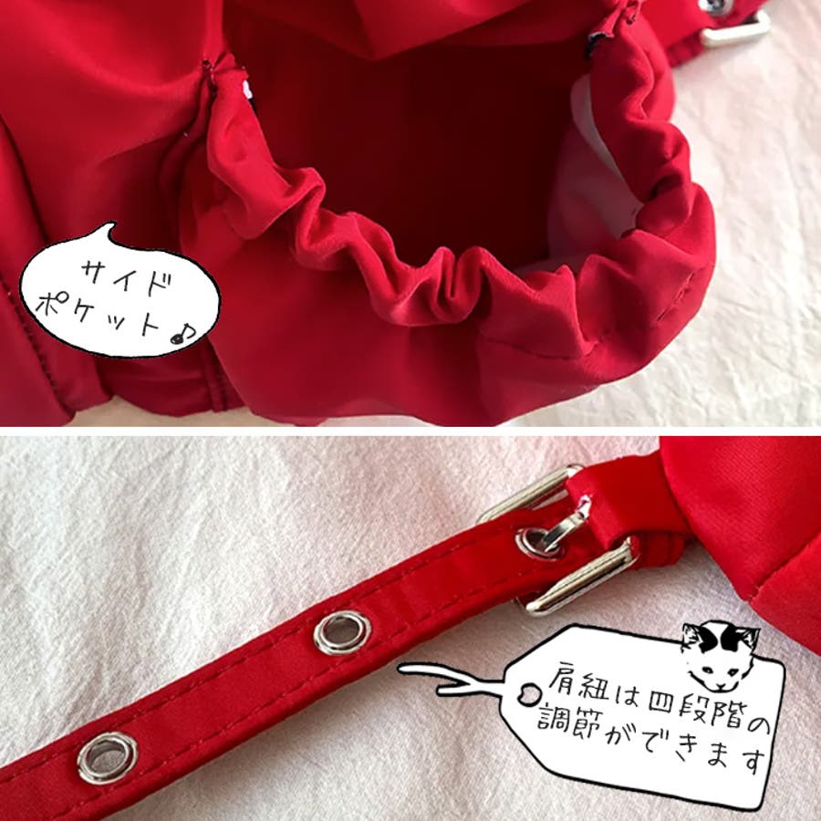 | サイズ | 表記サイズ: フリーサイズ(ワンサイズ) ワンサイズ たて : 27 cm よこ : 33 cm マチ : 13.5 cm ひも : 78.5 cm ※製造上の問題により1~2cm程度の誤差が生じる場合がございます。予めご了承下さい。 |