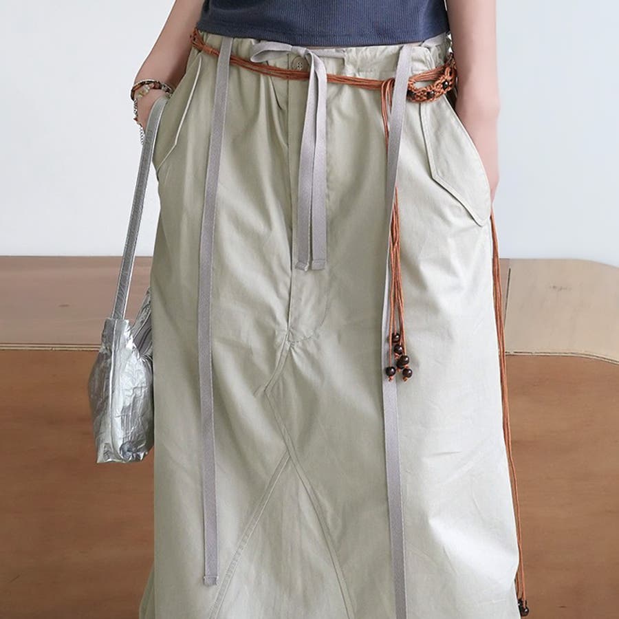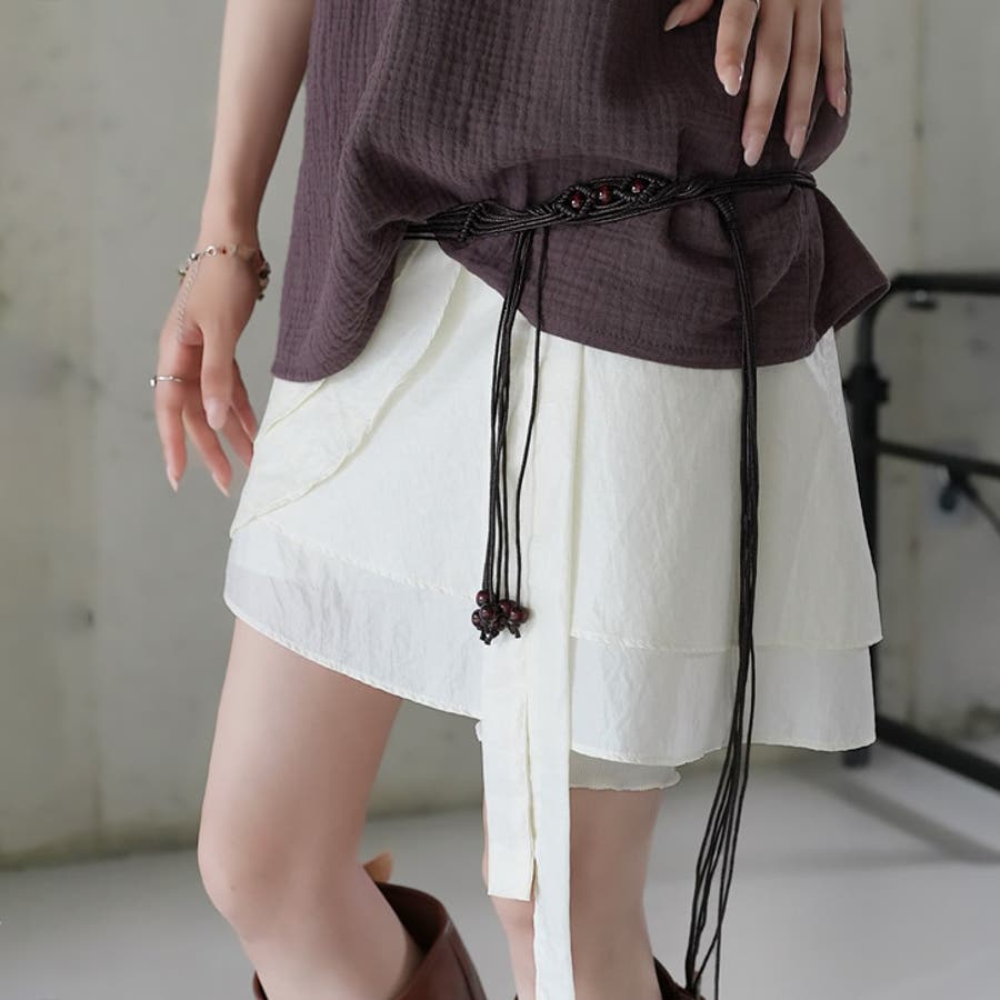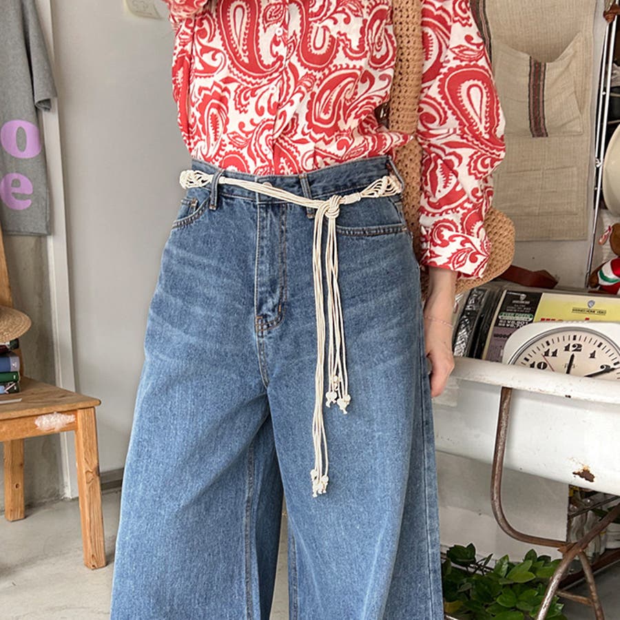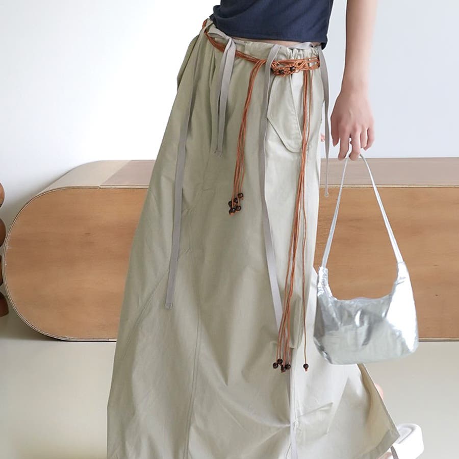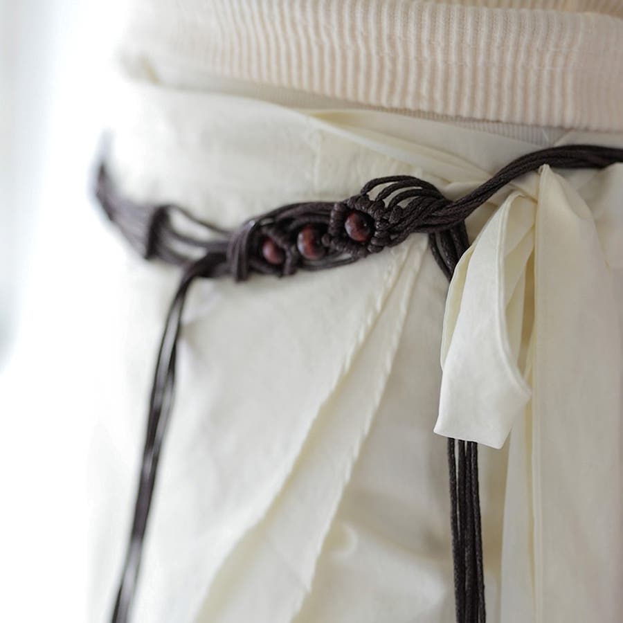 | ボヘミアン風なウッドビーズ装飾がオシャレな飾りベルトです。パンツはもちろんワンピースのウエストマークにもオススメです。 |