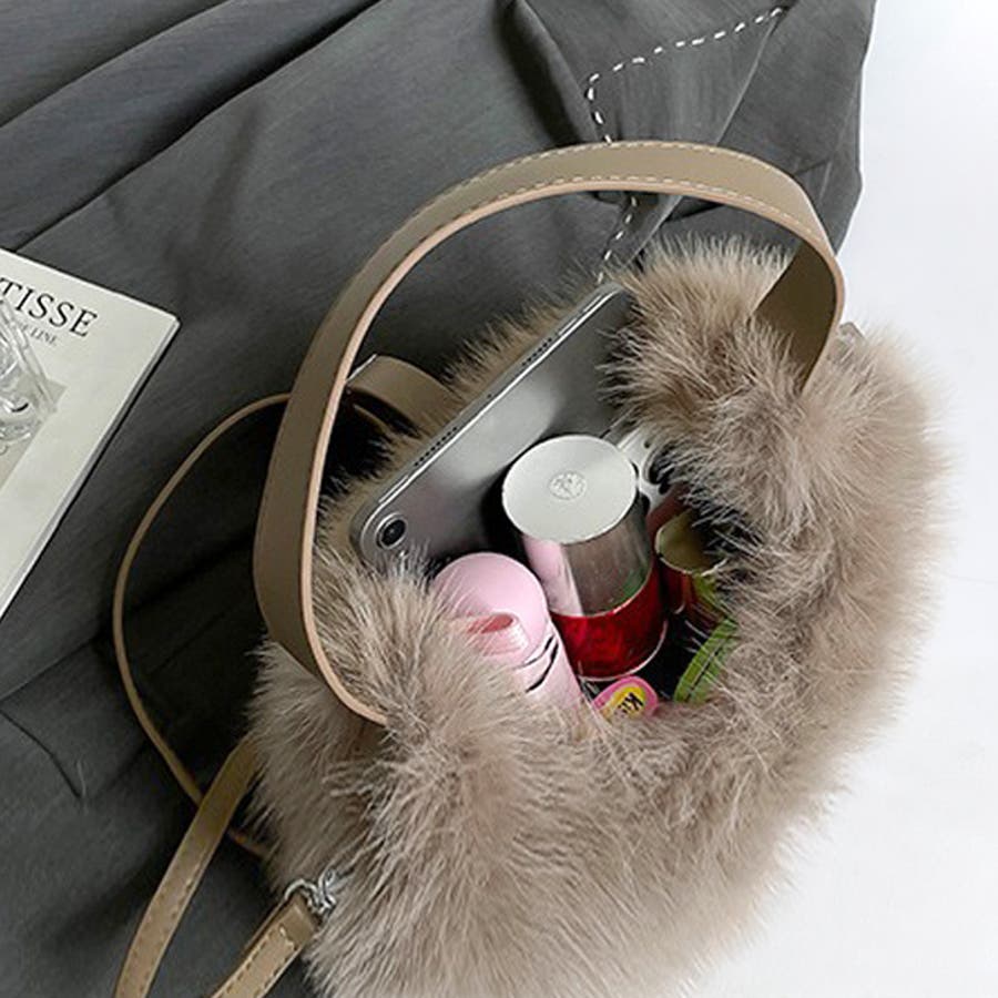 | 商品番号: 7275 商品名: エコファー2WAYバッグ 商品説明: フワフワのフェイクファーが大人可愛いバッグ。シーズンムードを後押しするボリューミーなファーと、金具ベルトがアクセントに。コロンとしたかわいい見た目ながらも大容量サイズで必要なものがキチンと入ります。ショルダーベルト付きで斜めがけや肩がけなどハンズフリーでも持てる2WAYデザイン。 |