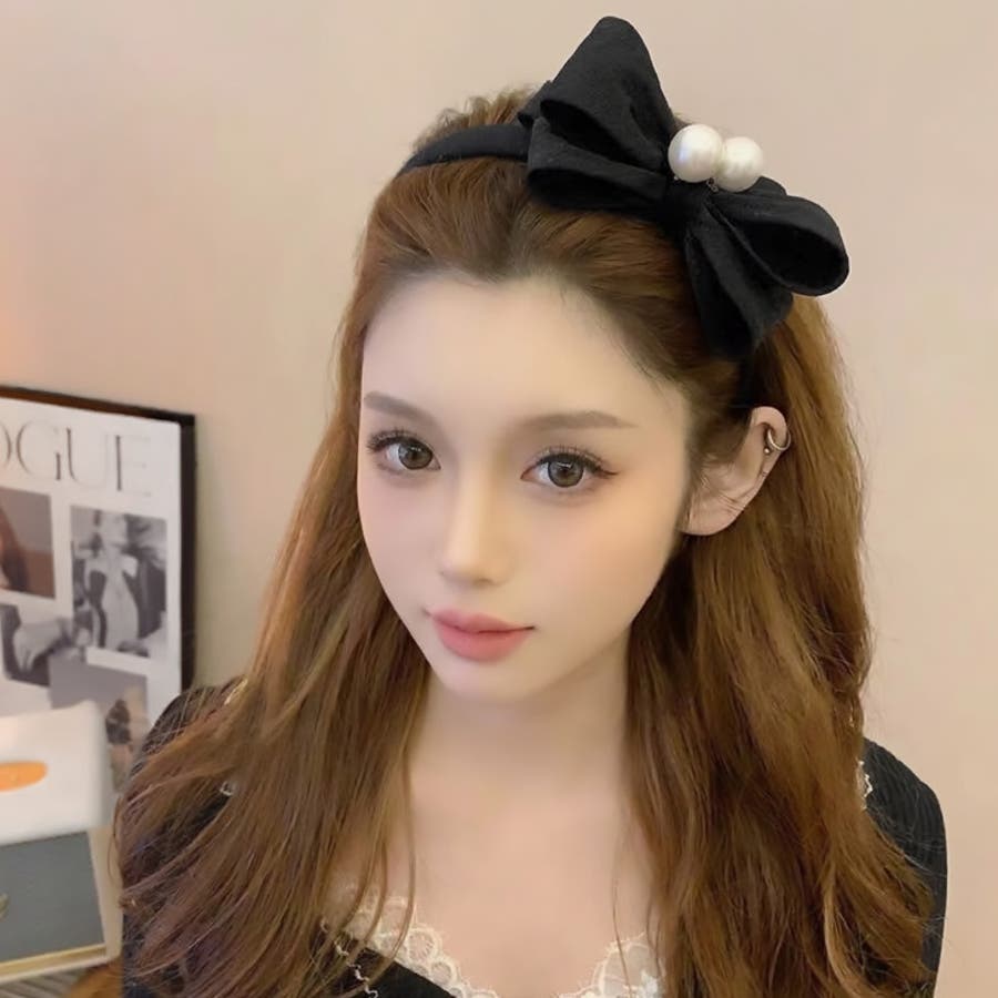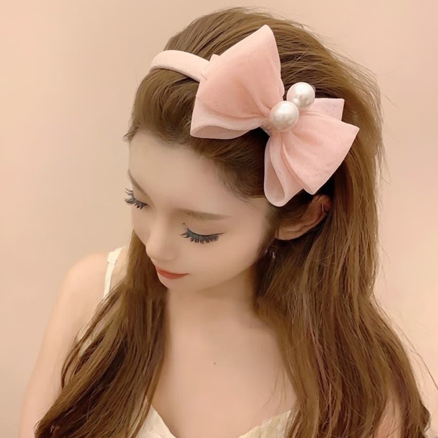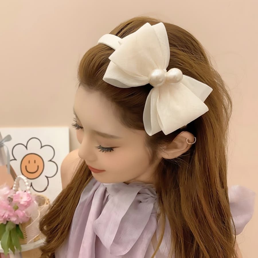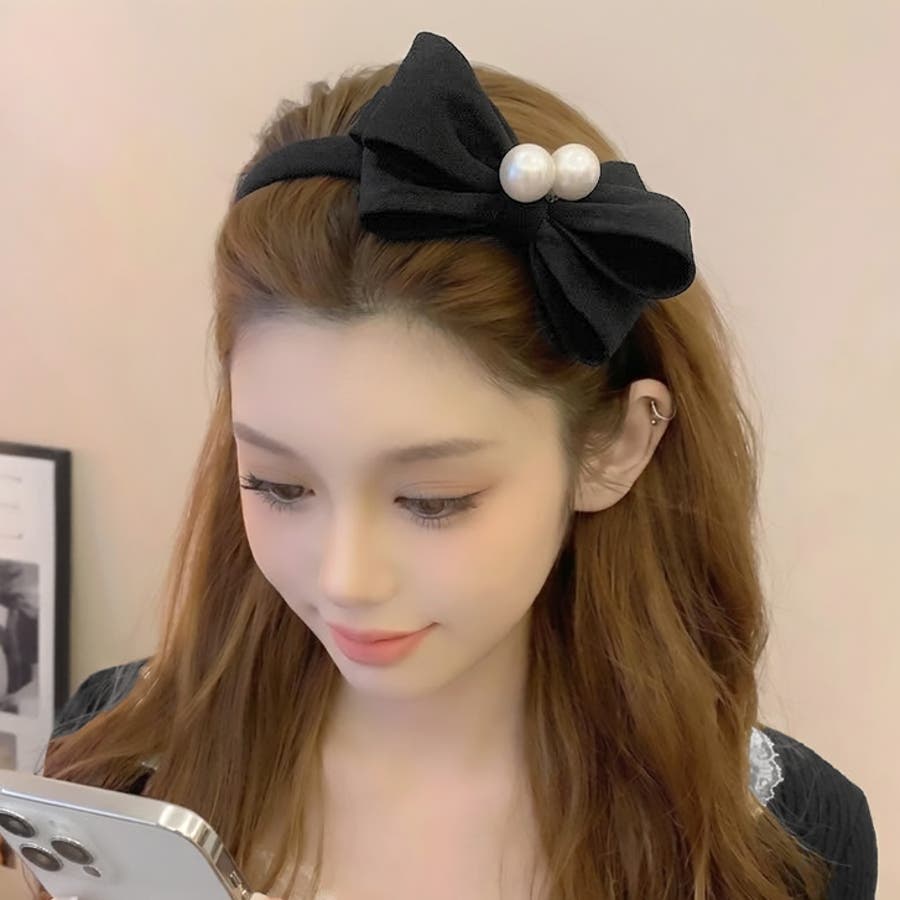 【7283】パール×ビッグリボンカチューシャ