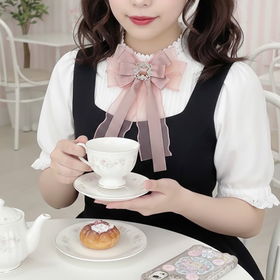 | ブラウスやワンピにつければ一気にトレンド感の増すアクセです。 |