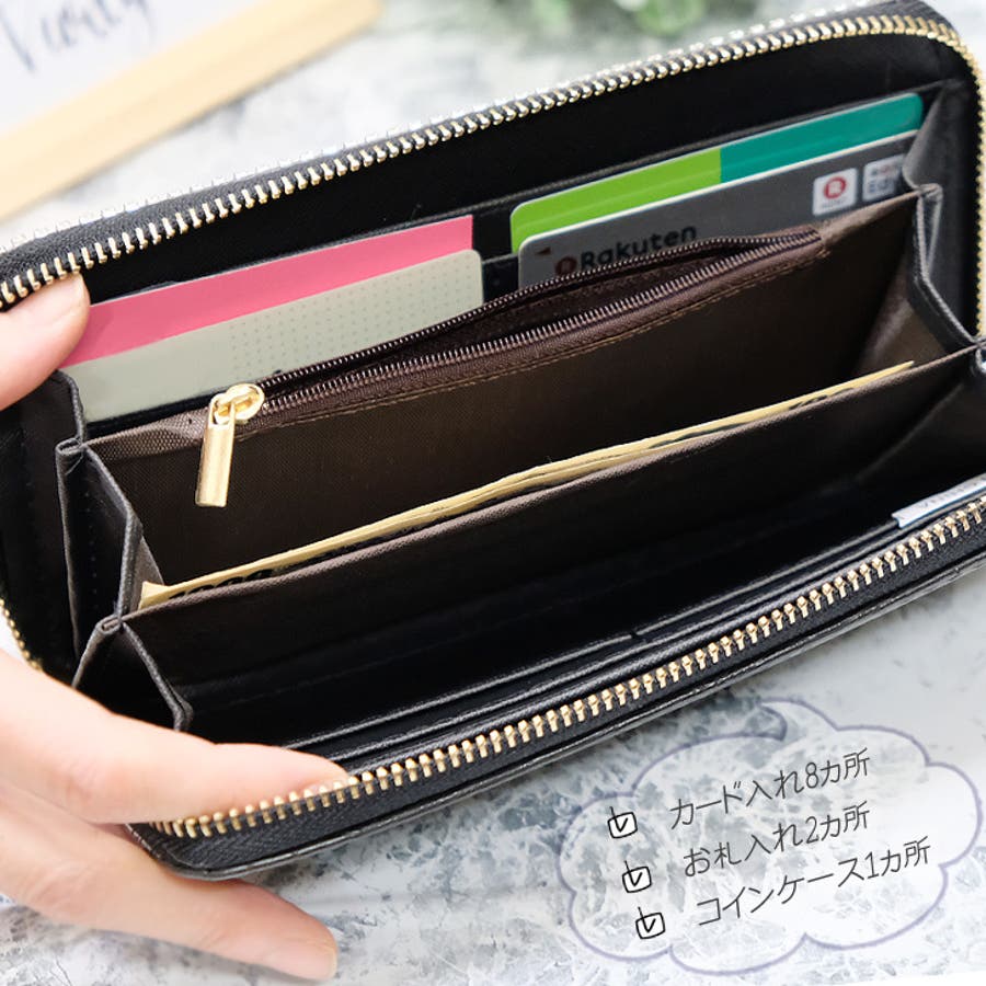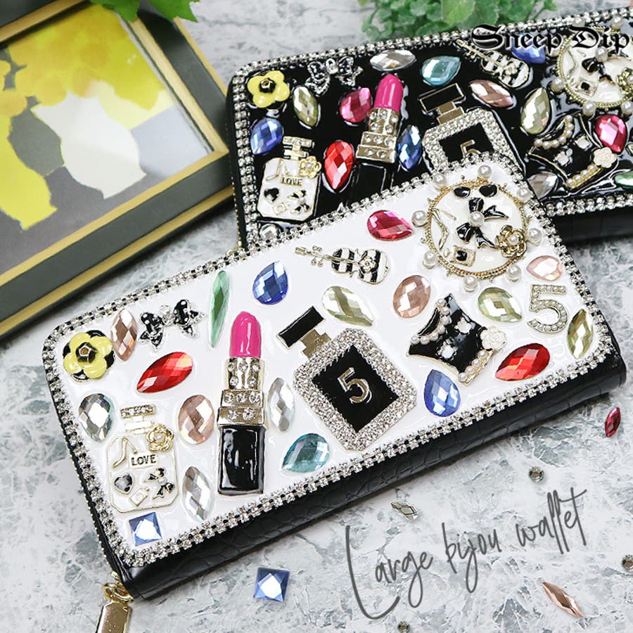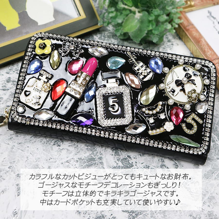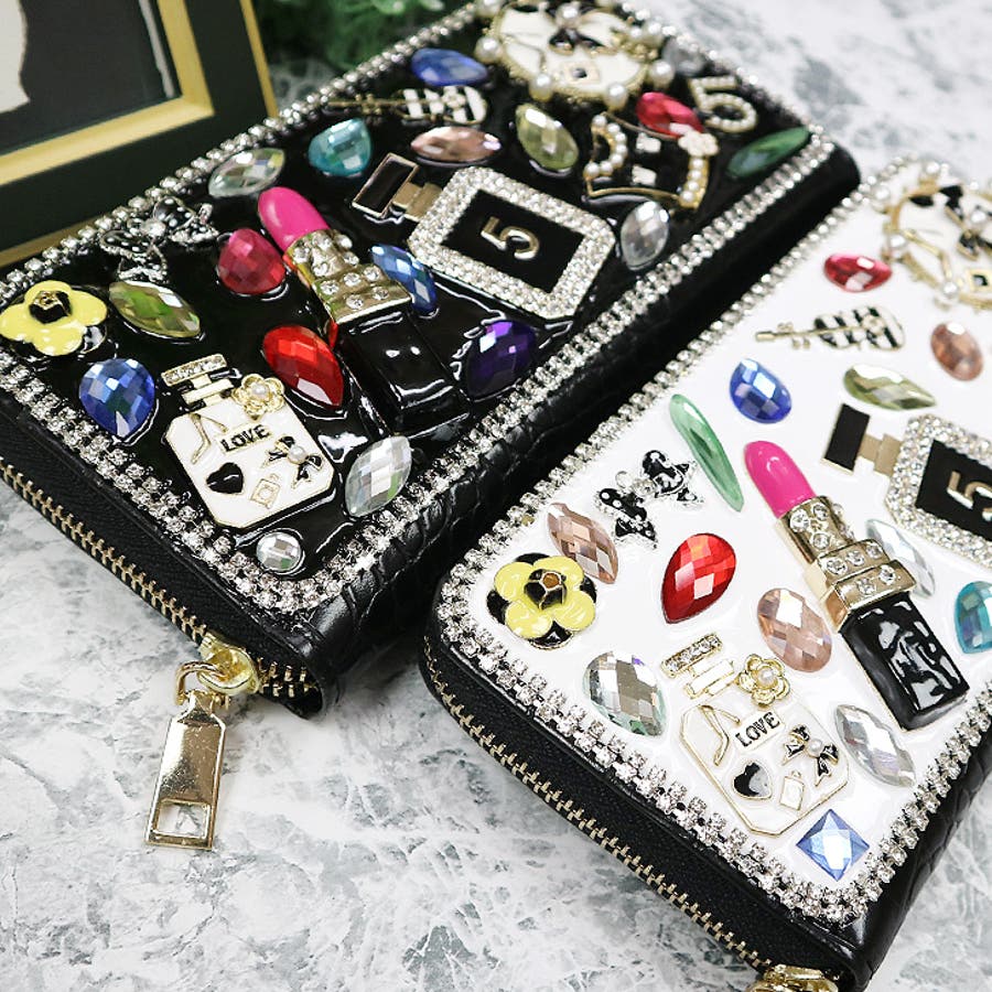 | 素材等 | 本体:エコレザー/合金 カード入れ:8ヶ所 お札入れ:2ヶ所 コインケース:ファスナーつき その他:ファスナーで開け閉め ご注意:ビジューの色や形はそれぞれ異なります。予めご了承ください。 |