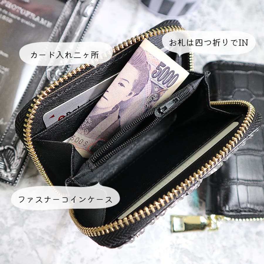 | 素材等 | フェイクレザー/合金 ファスナーポケット1箇所 カード入れ2箇所 |