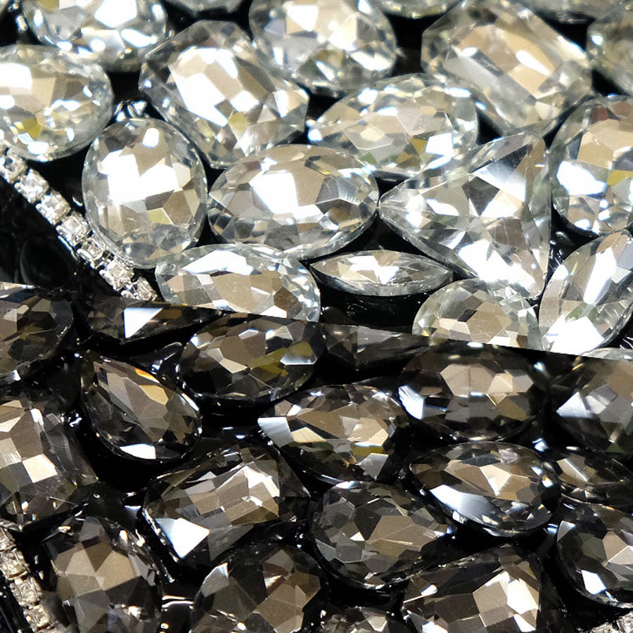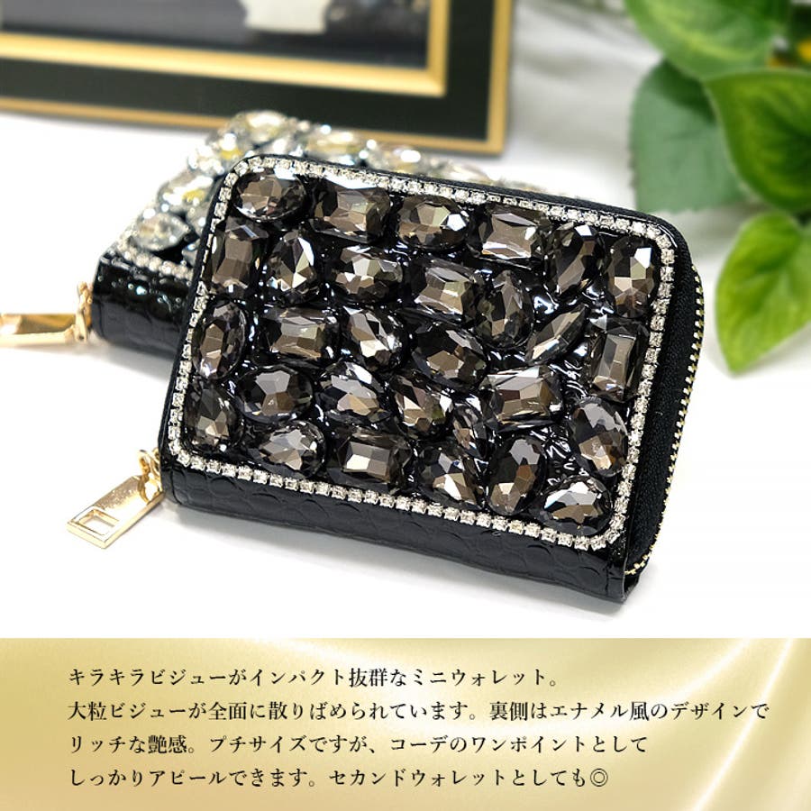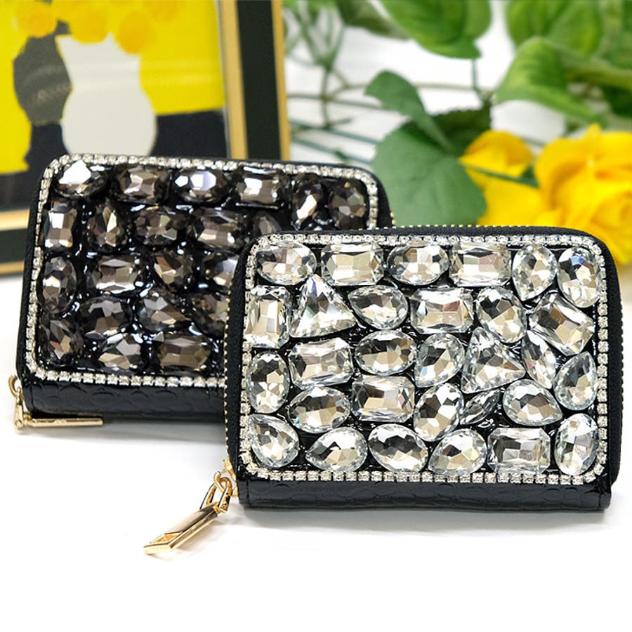 | いろんな形のビジューが隙間なくぎっしり詰まっているのでキラキラ度がさらにアップ。キラキラ好きならクリア、ちょっと大人感が欲しいならブラックがおすすめです。パーティーやフェスでコンパクトに使えるミニサイズです♪ |