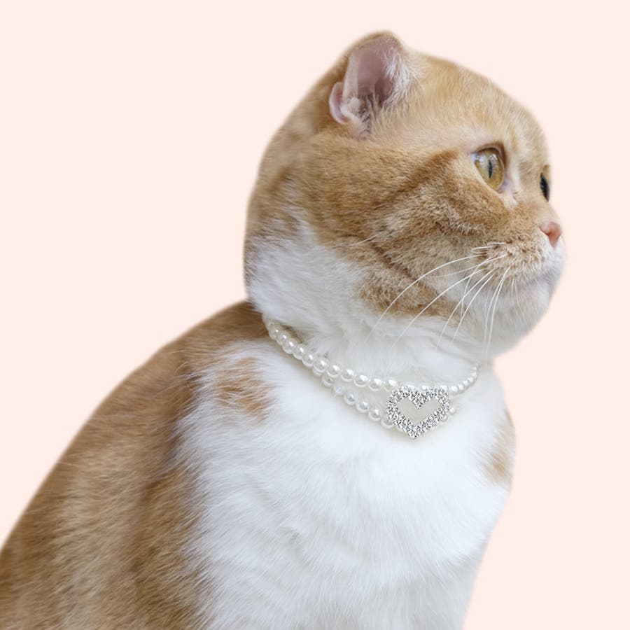 【p025】パールハートネックレス(ペット用)