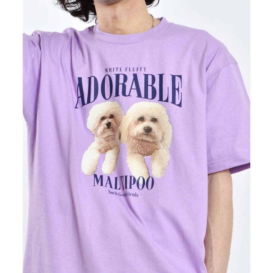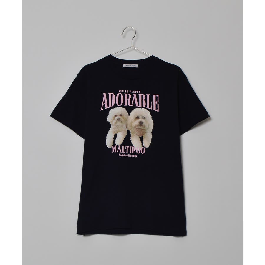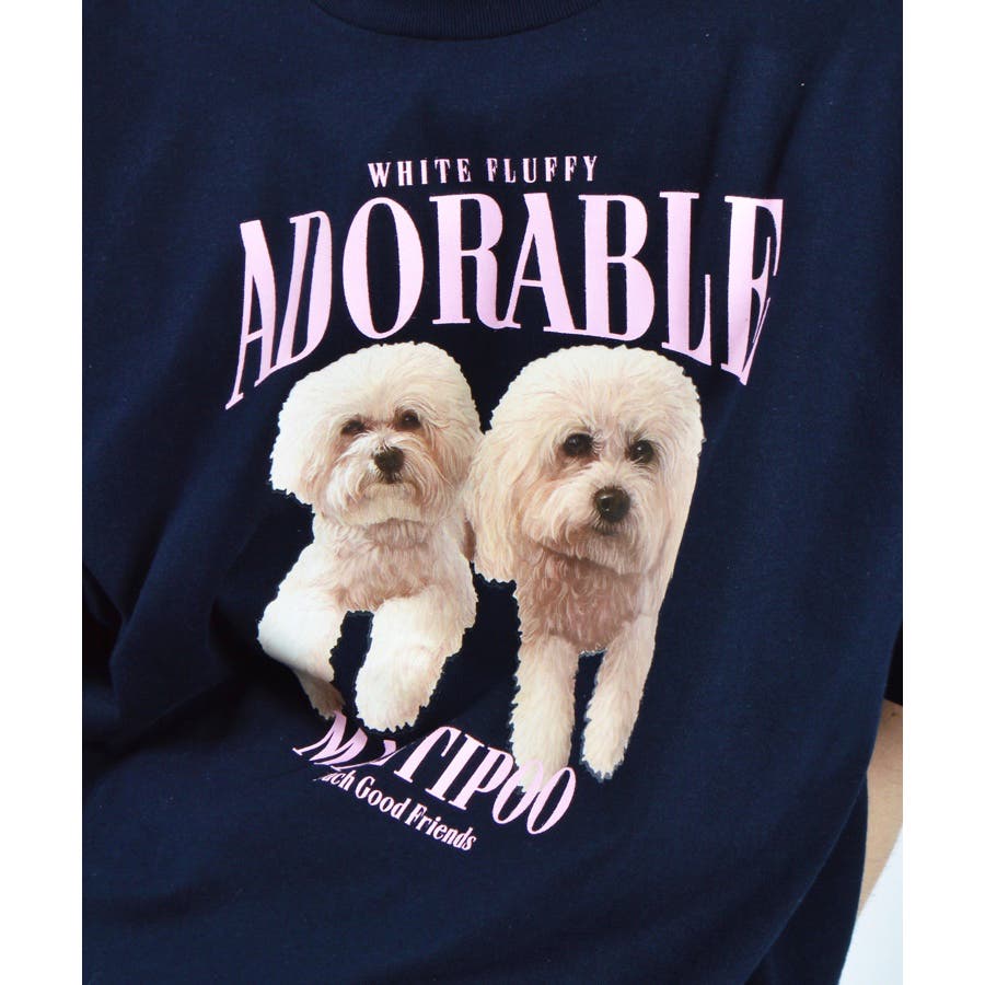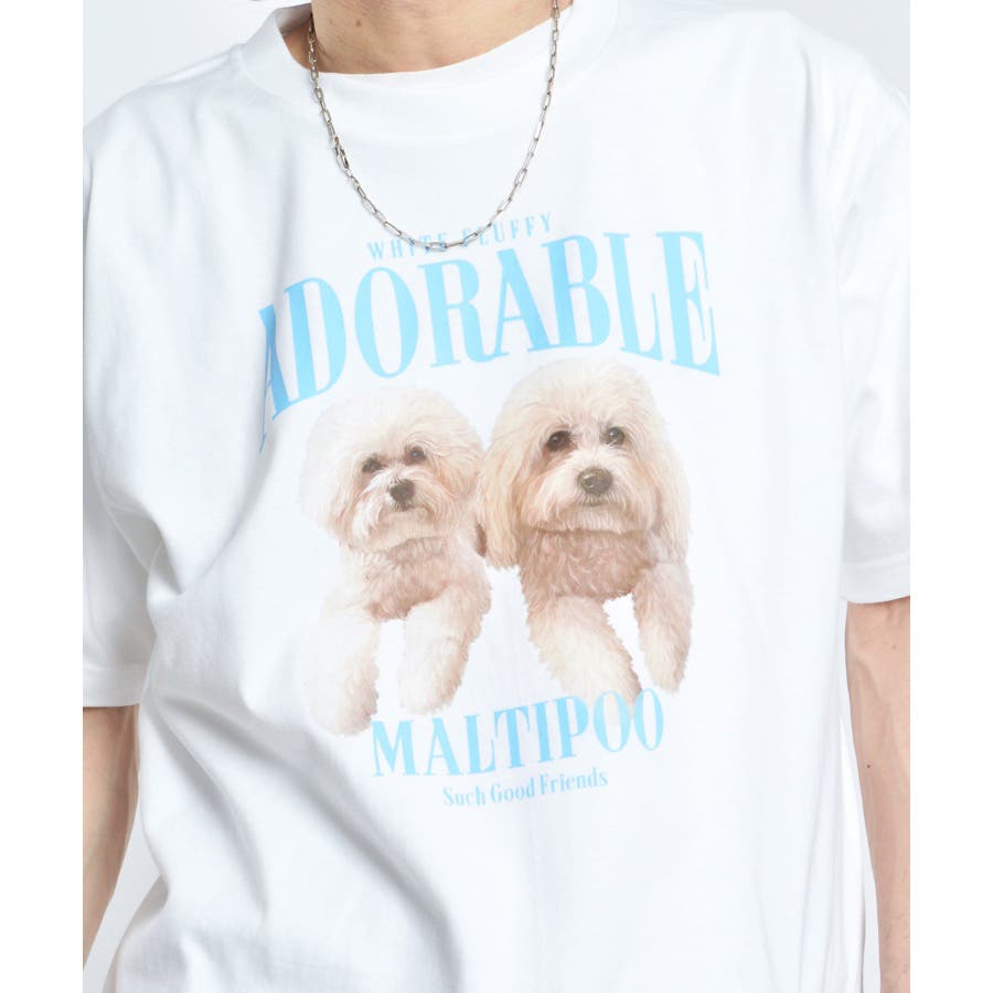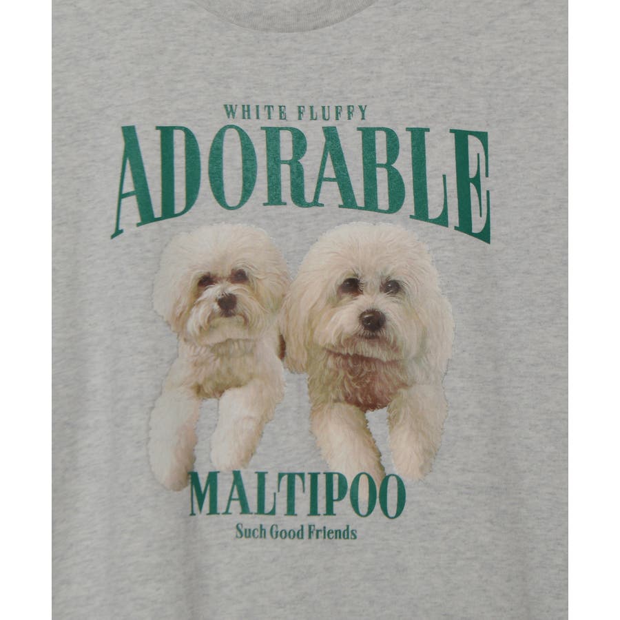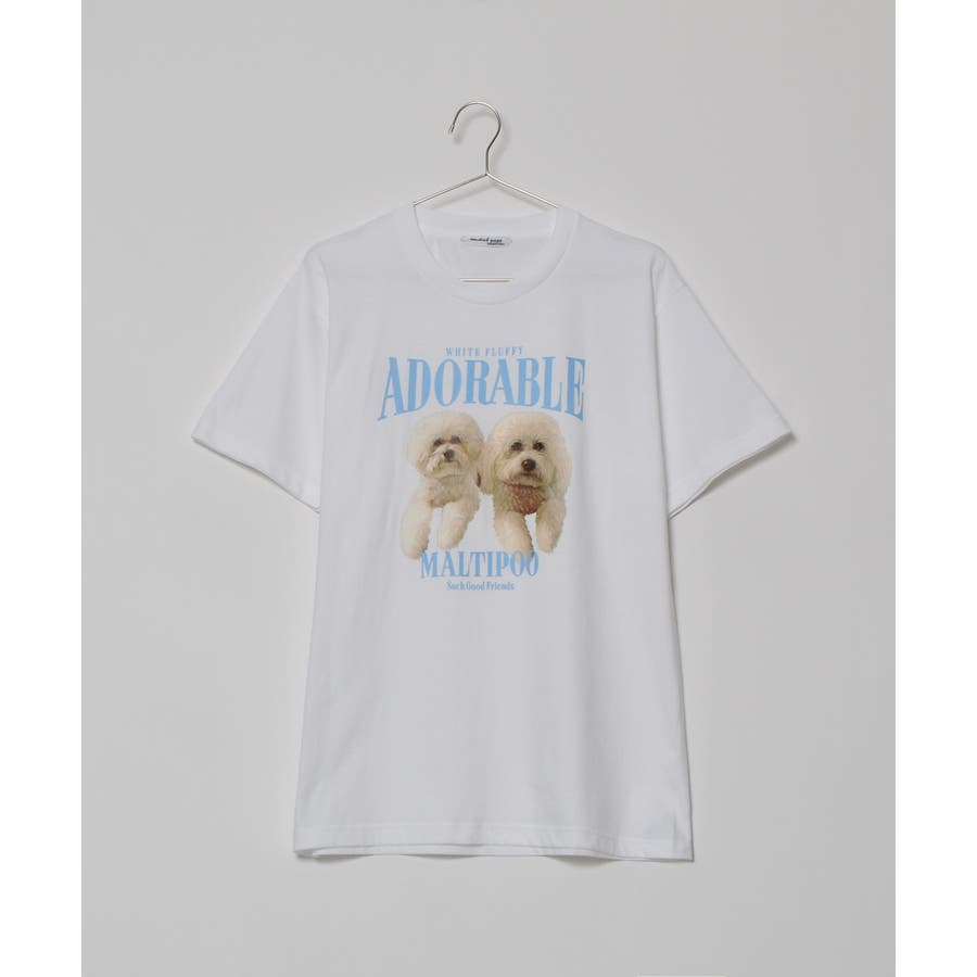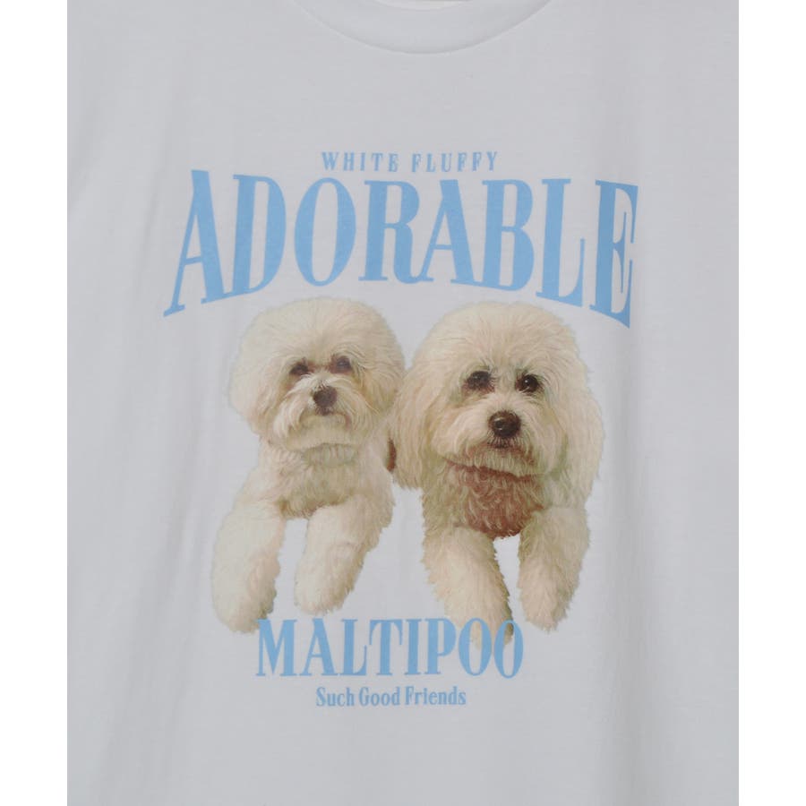 フロントに大きくマルチーズとトイプードルの転写プリントを施し、かわいさとインパクトを備えたクルーネックTシャツが登場。