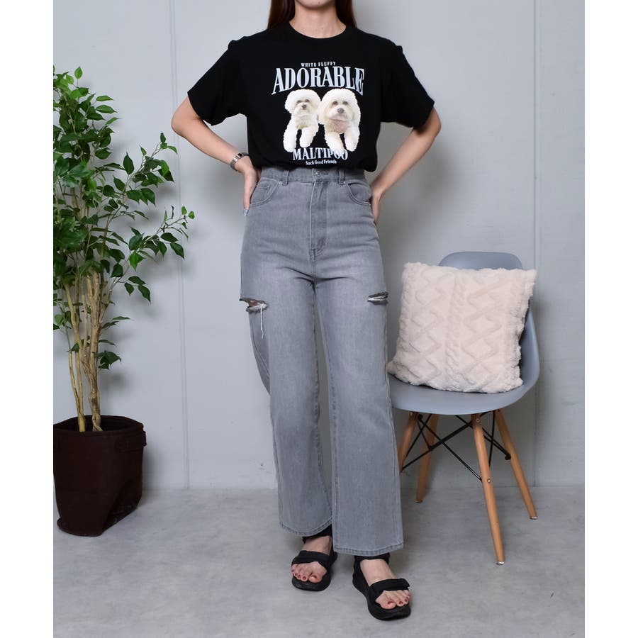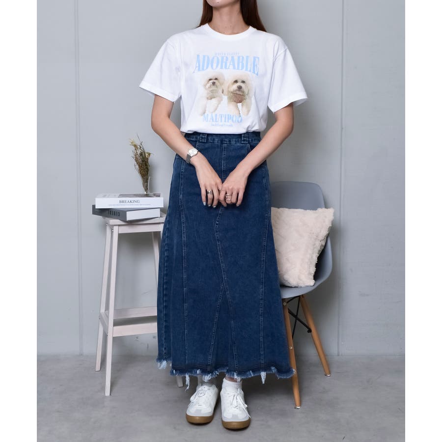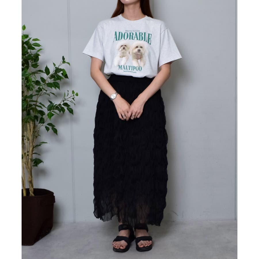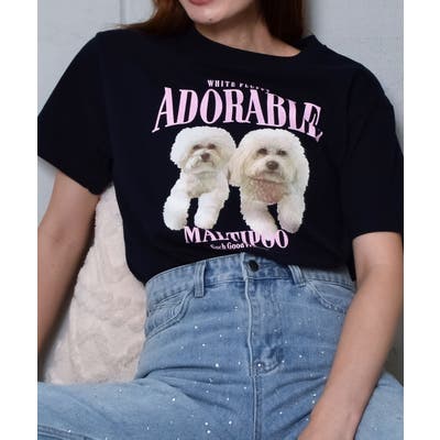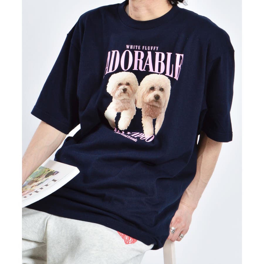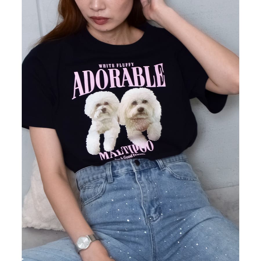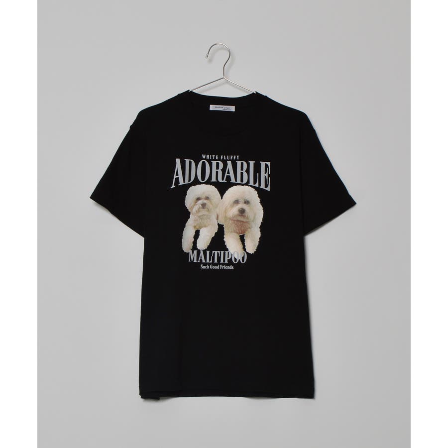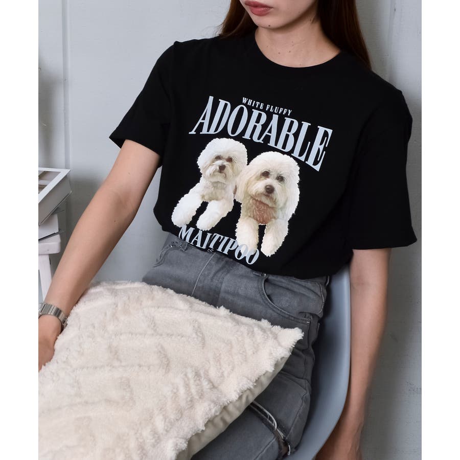 フロントに大きくマルチーズとトイプードルの転写プリントを施し、かわいさとインパクトを備えたクルーネックTシャツが登場。