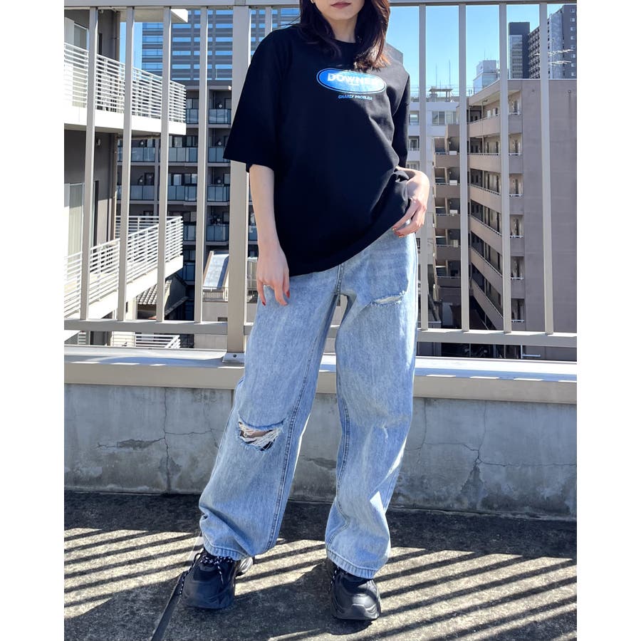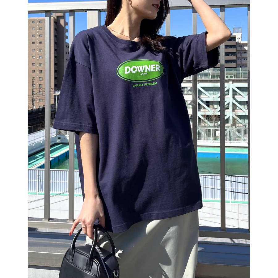 DOWNER オーバルロゴ ビッグシルエットTシャツ