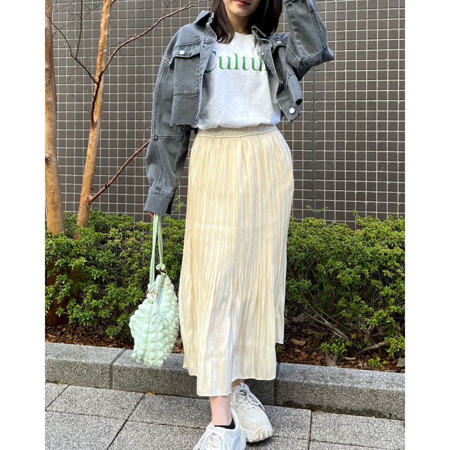 女性であれば、デニムやカーゴパンツなどのボトムも勿論のこと、スカートでガーリーに着こなすのも◎。