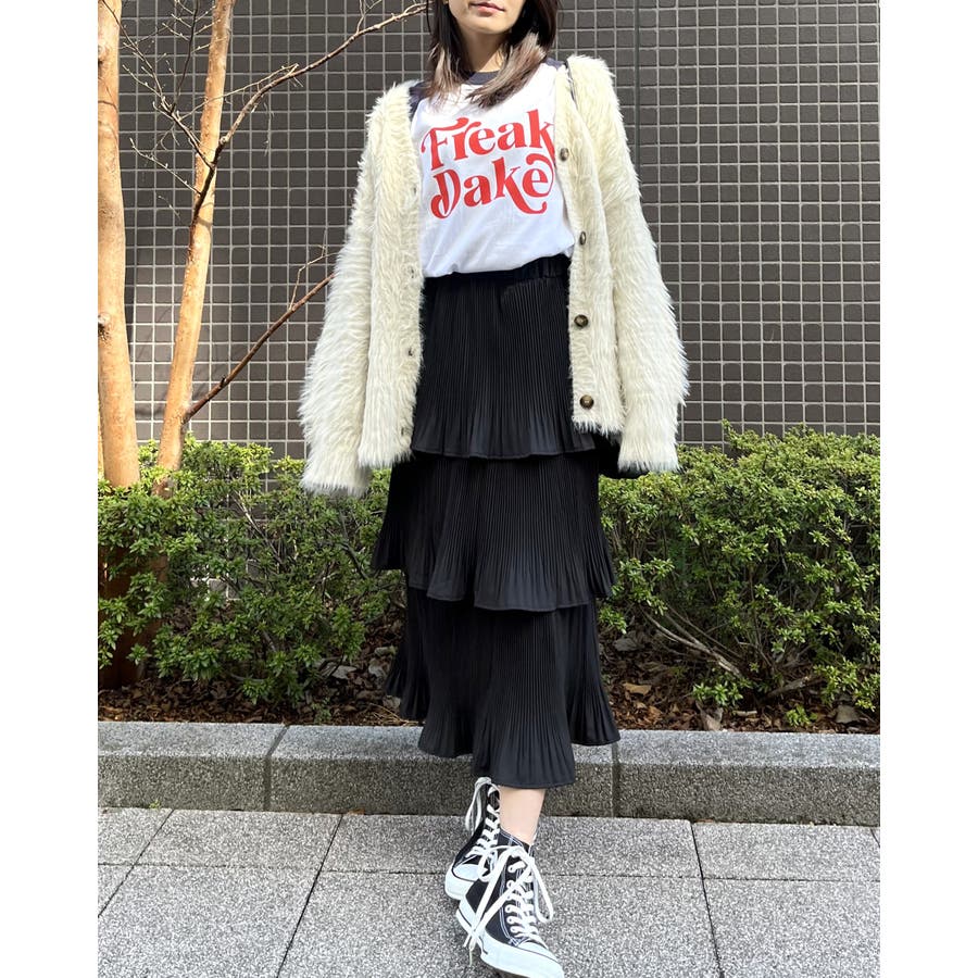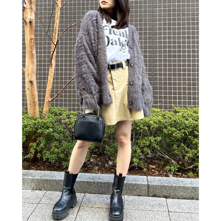 女性であれば、デニムやカーゴパンツなどのボトムも勿論のこと、スカートでガーリーに着こなすのも◎。