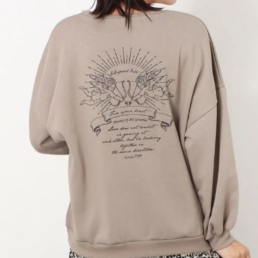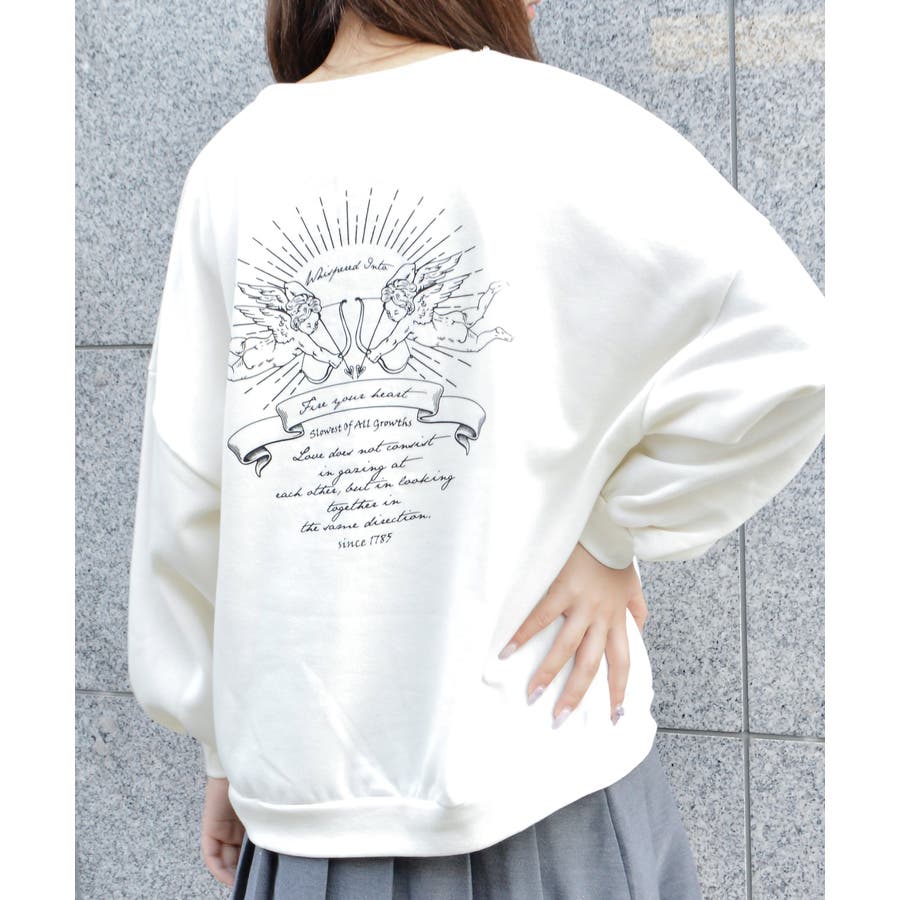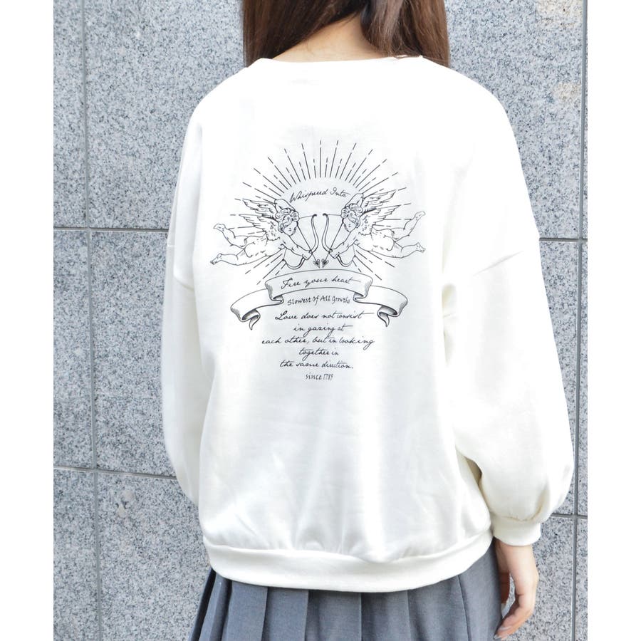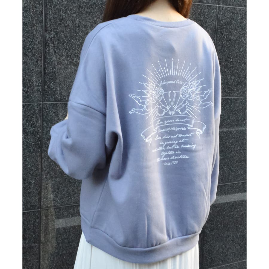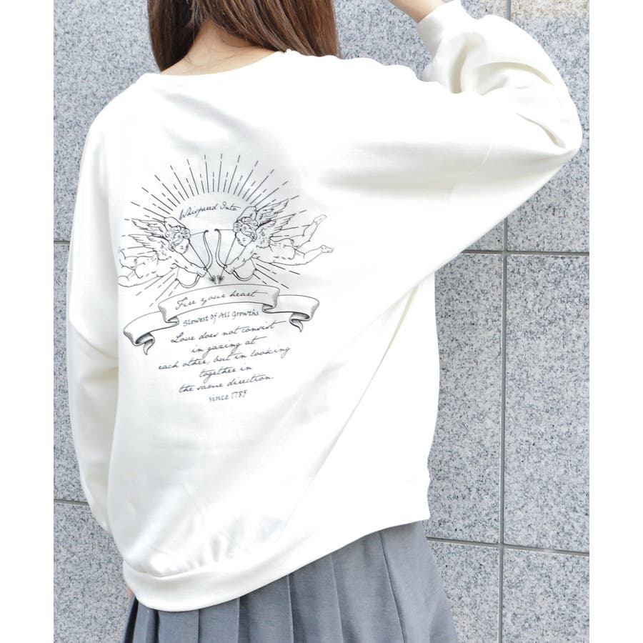 プリント バックプリント おしゃれ かわいい 長袖 淡色 パステルカラー スウェット トップス トレーナー トレーナー大きめ トレーナー大きいサイズ バックプリント オーバーサイズ 裏起毛 レディース 人気 天使 秋 冬 秋冬