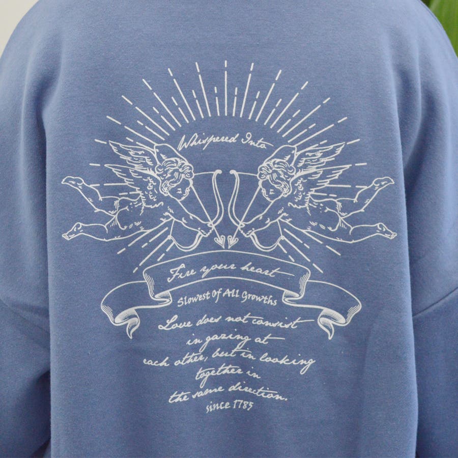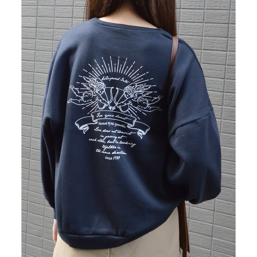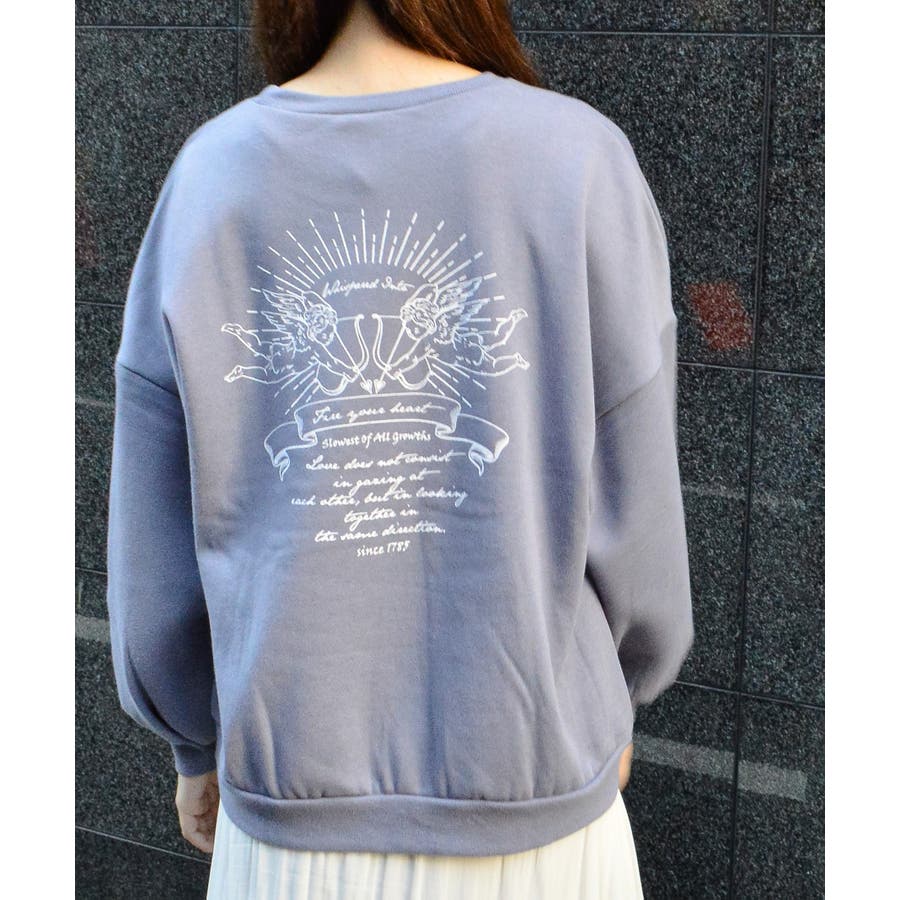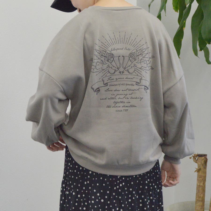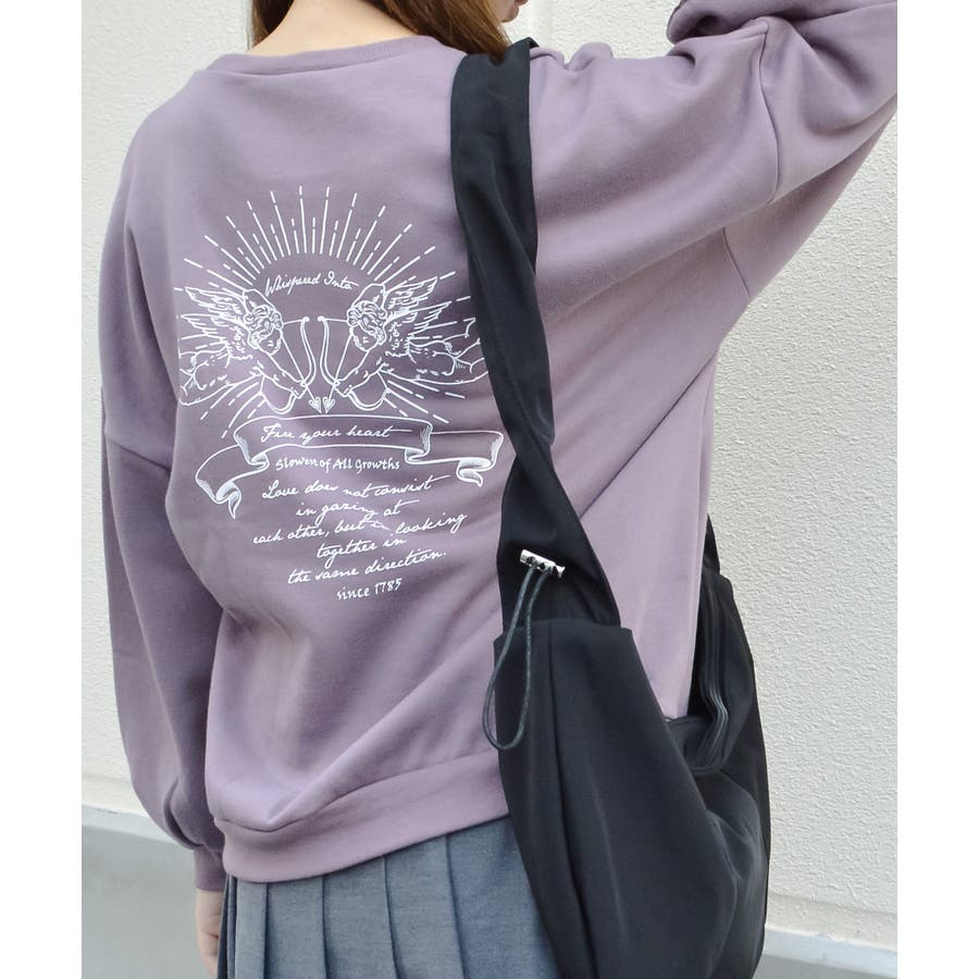 プリント バックプリント おしゃれ かわいい 長袖 淡色 パステルカラー スウェット トップス トレーナー トレーナー大きめ トレーナー大きいサイズ バックプリント オーバーサイズ 裏起毛 レディース 人気 天使 秋 冬 秋冬