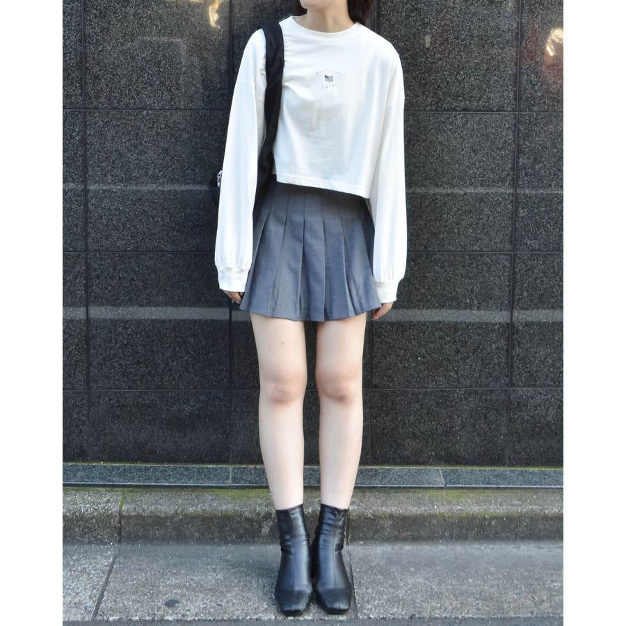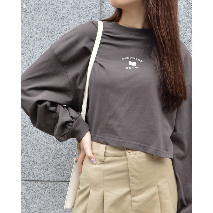 ・クシュっとした袖口がかわいらしい、ミニ丈プリントロンT。