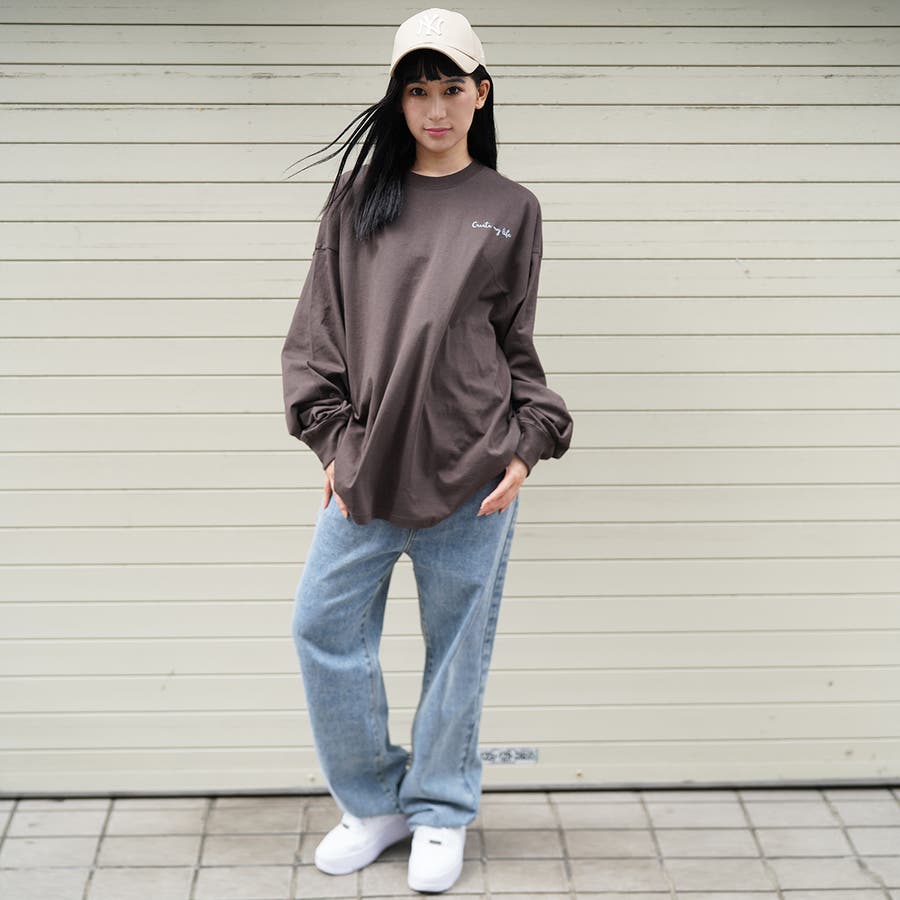 ・大きめのサイズなのでワイドパンツなどを合わせたストリート風コーデもおすすめです!