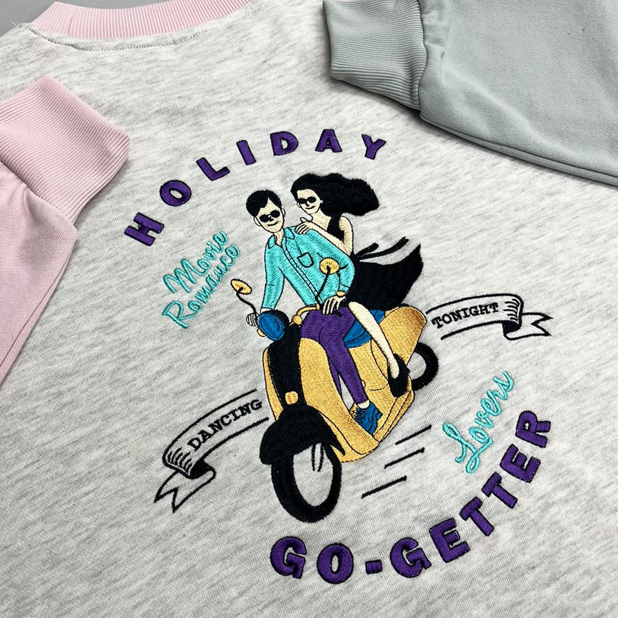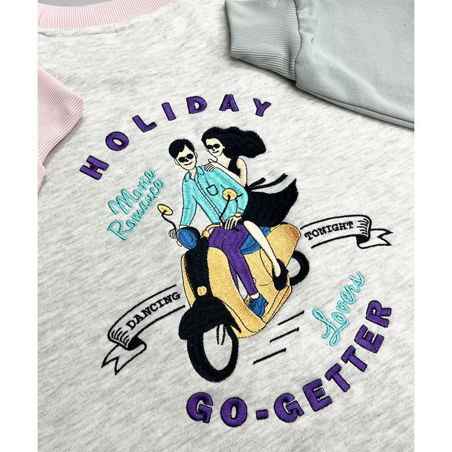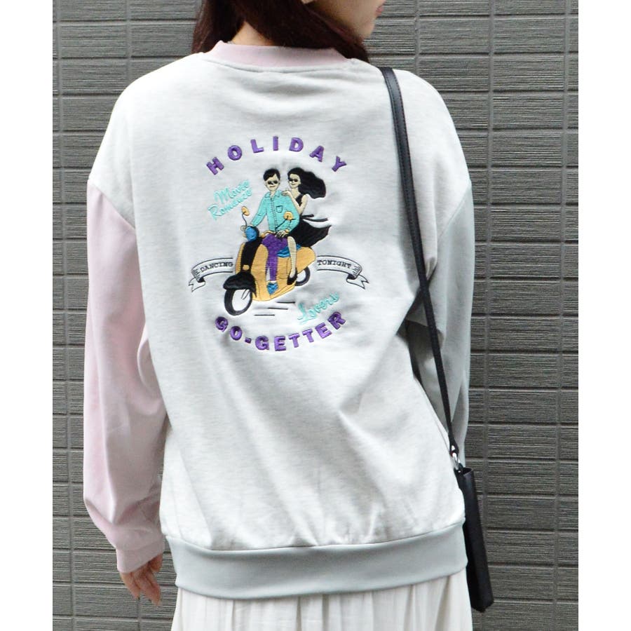 ・鮮やかな色使いの刺繍がポップな印象を与える一枚。