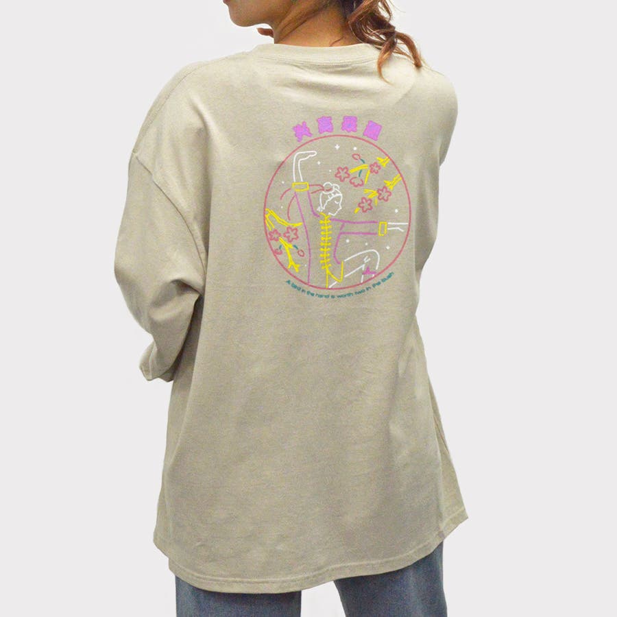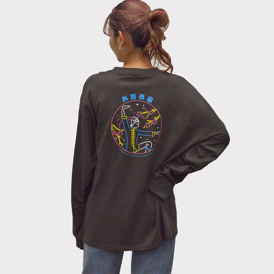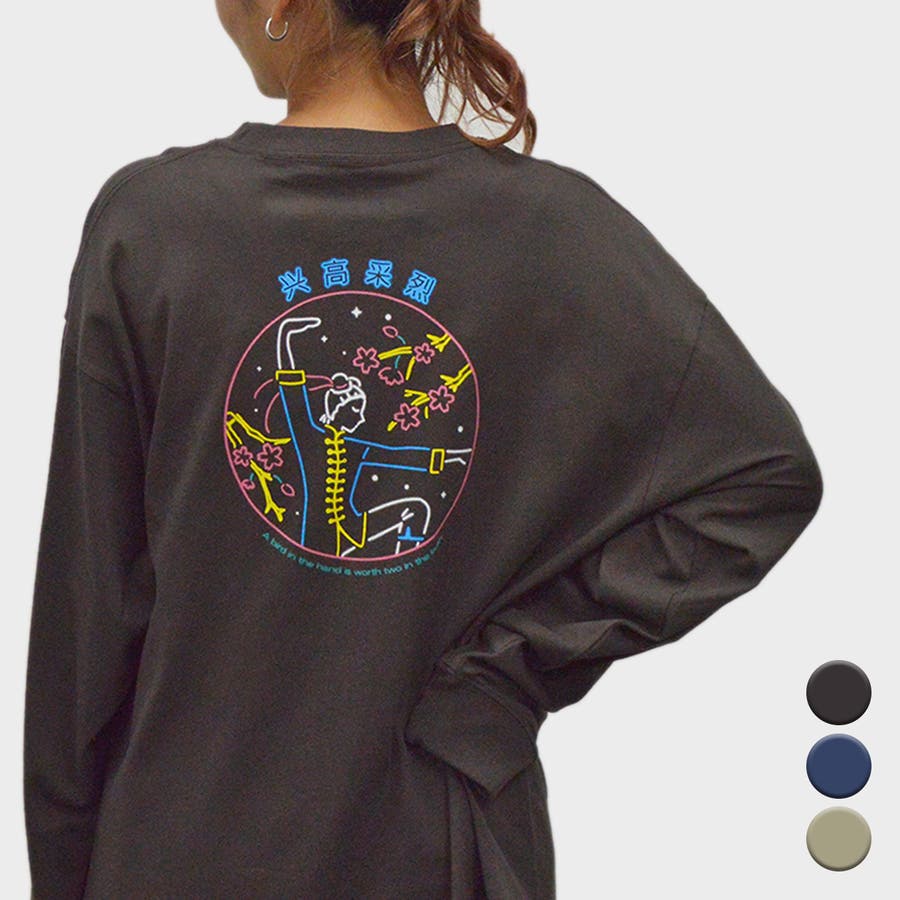 バックプリント ロンT ネオン レディース 秋冬 可愛い 秋 秋服 冬 冬服 春 春服 ロンT ロンティー 長袖 トップス プチプラ ストリート バックプリント 長袖 カットソー ゆったり 韓国 韓国ファッション オーバーサイズ 大きいサイズ ビッグシルエット