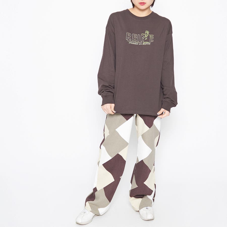 メンズライクなプリントなので、デニムやカーゴパンツ、コーデュロイパンツとも相性◎