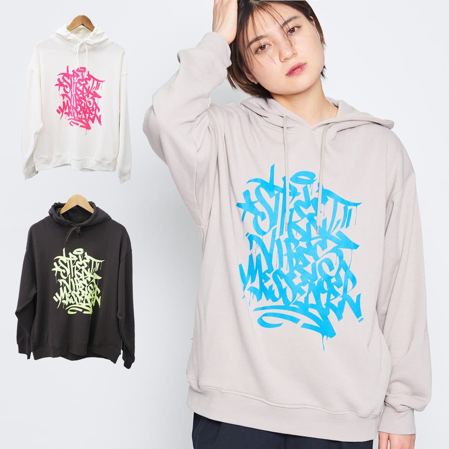 ネオンプリント裏毛パーカー レディース 春服