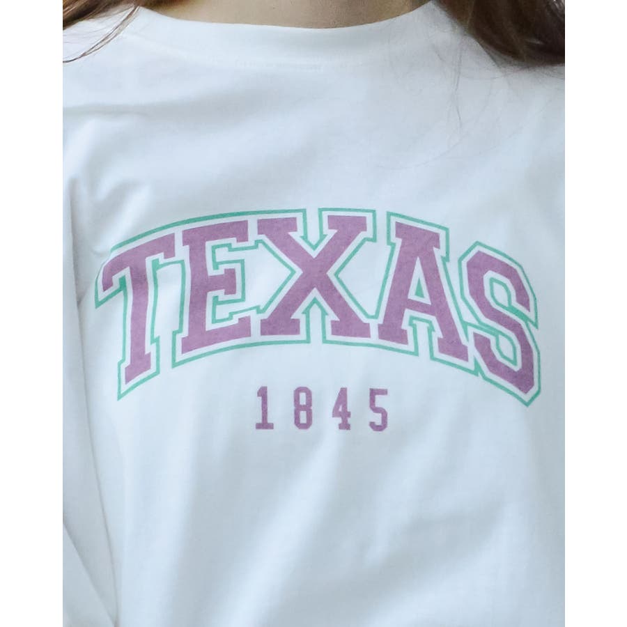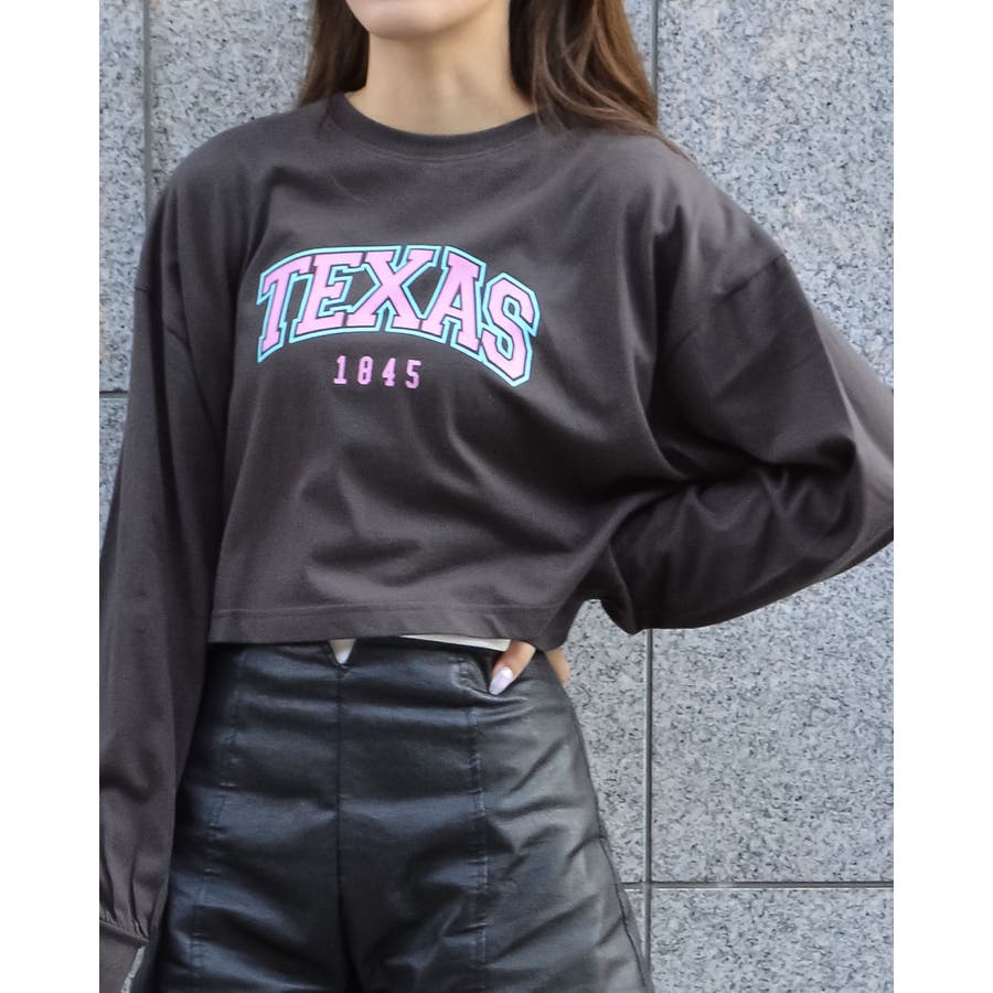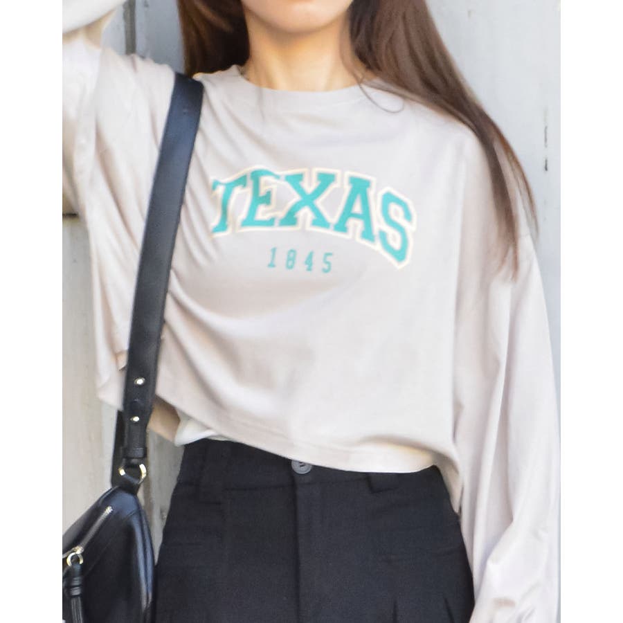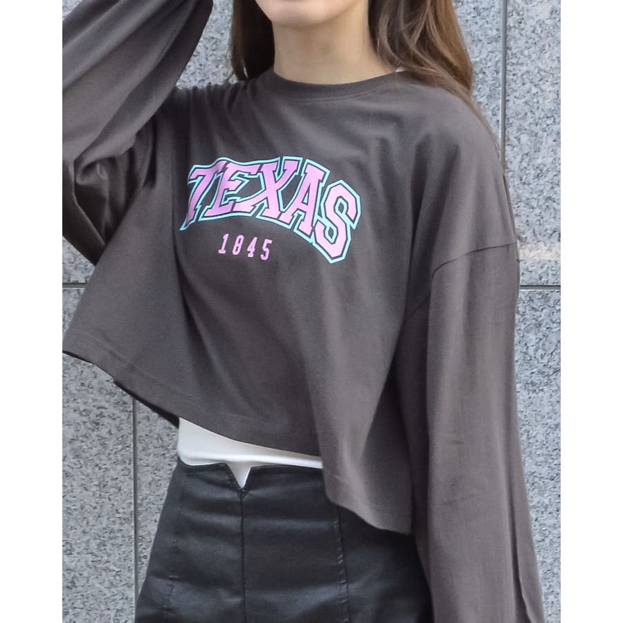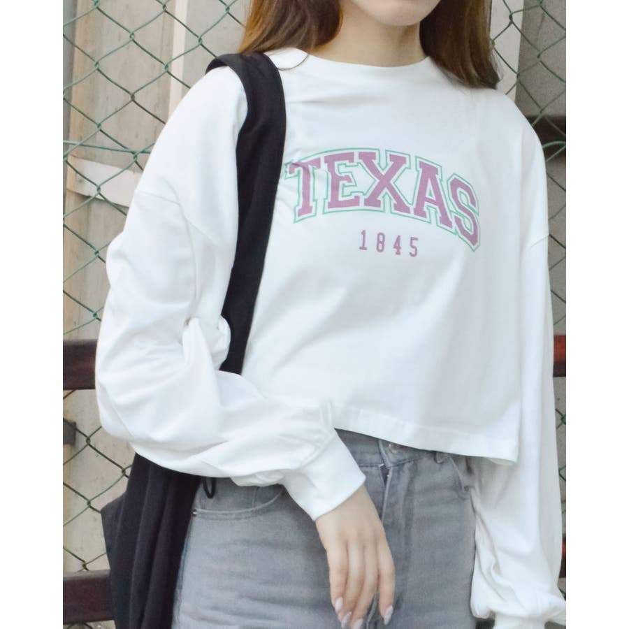 ・大きなカレッジロゴが映えるクロップド丈のロンT。