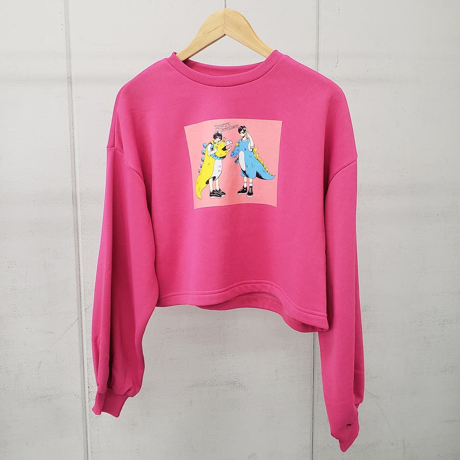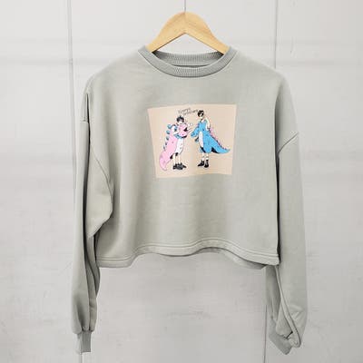 怪獣カップルプリントクロップド裏起毛トップス 韓国ファッション パーカー