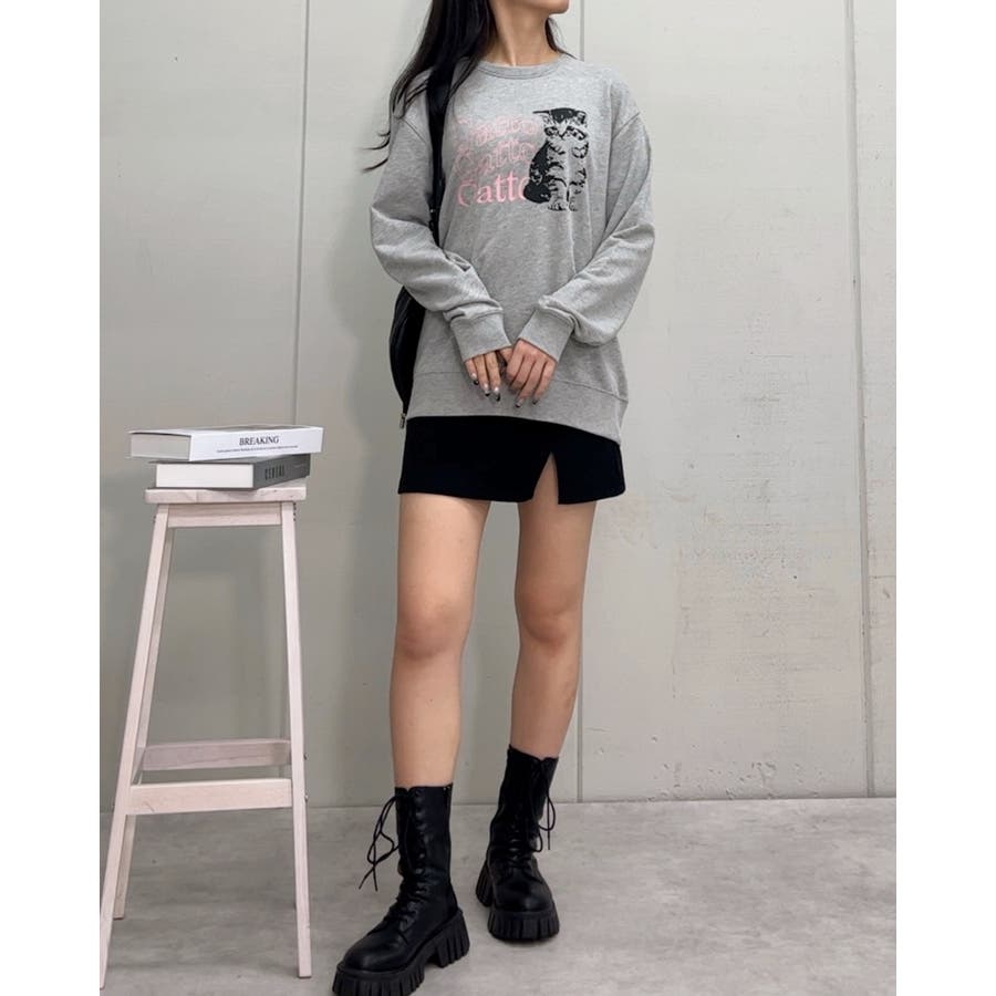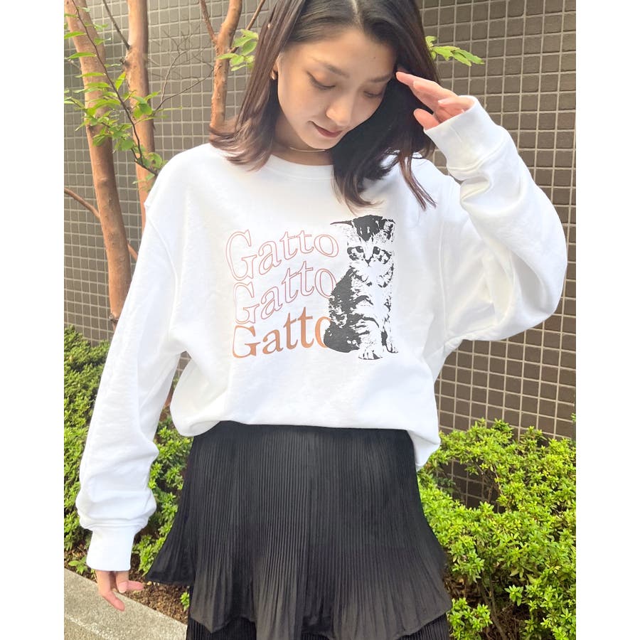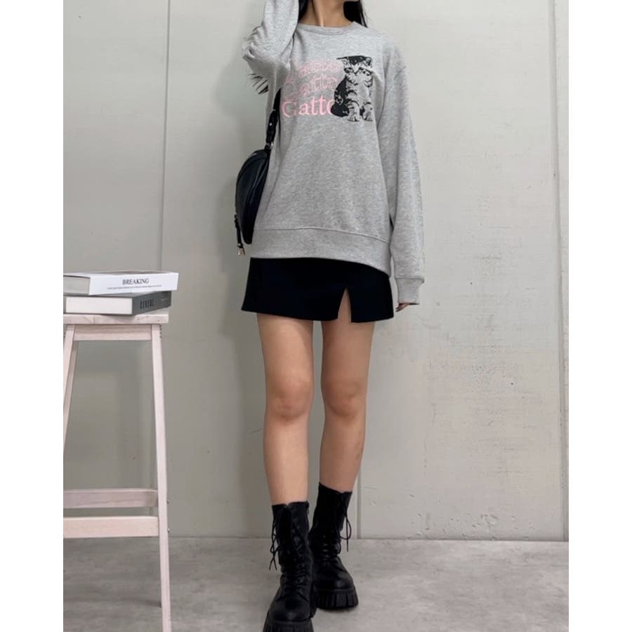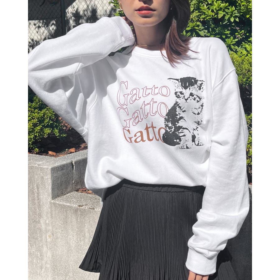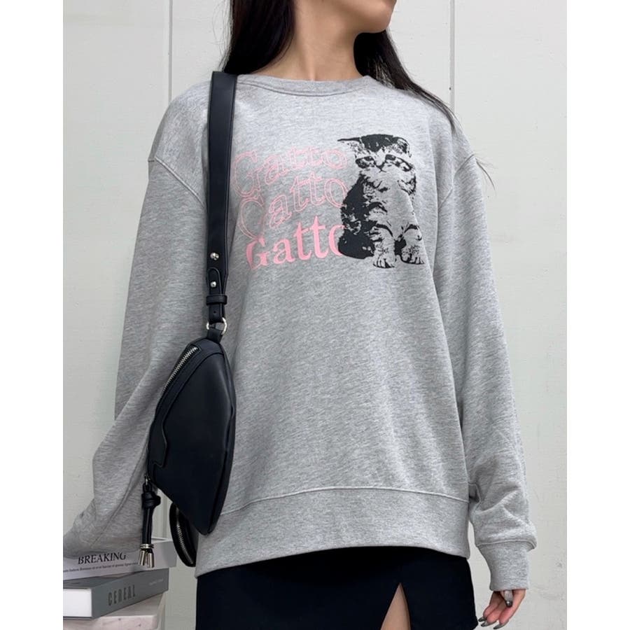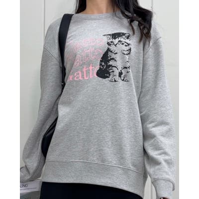 レディース ロゴプリント プリント アニマル 猫 ネコ キャット ガーリー フレンチガーリー 韓国ガーリー スウェット ヴィンテージ ユニセックス プリント モチーフ ロゴ 夏服 夏 春服 春 秋 秋服 冬 冬服 オーバーサイズ プリント トレーナー 韓国ファッション 韓国系