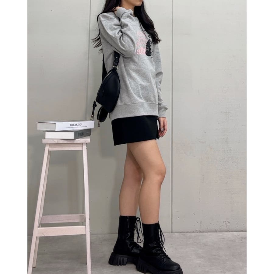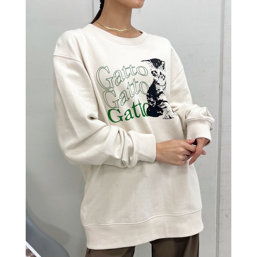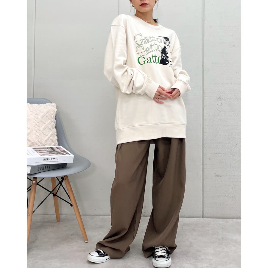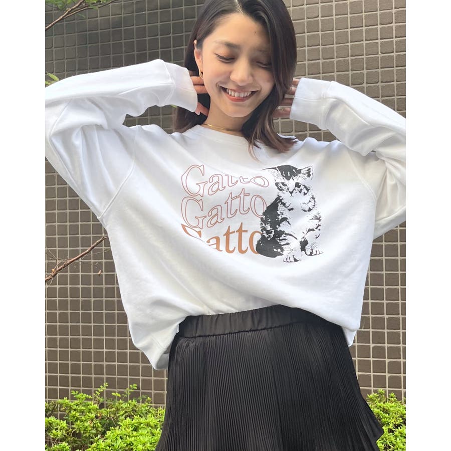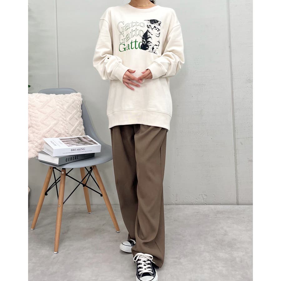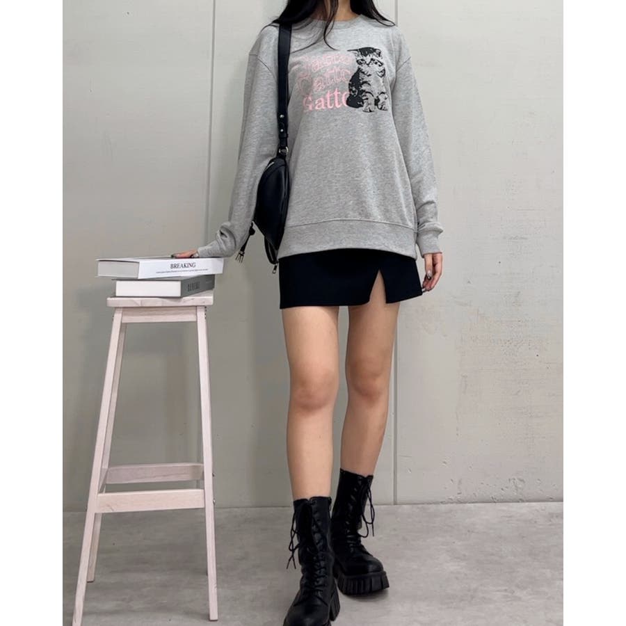 レディース ロゴプリント プリント アニマル 猫 ネコ キャット ガーリー フレンチガーリー 韓国ガーリー スウェット ヴィンテージ ユニセックス プリント モチーフ ロゴ 夏服 夏 春服 春 秋 秋服 冬 冬服 オーバーサイズ プリント トレーナー 韓国ファッション 韓国系