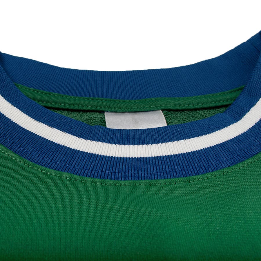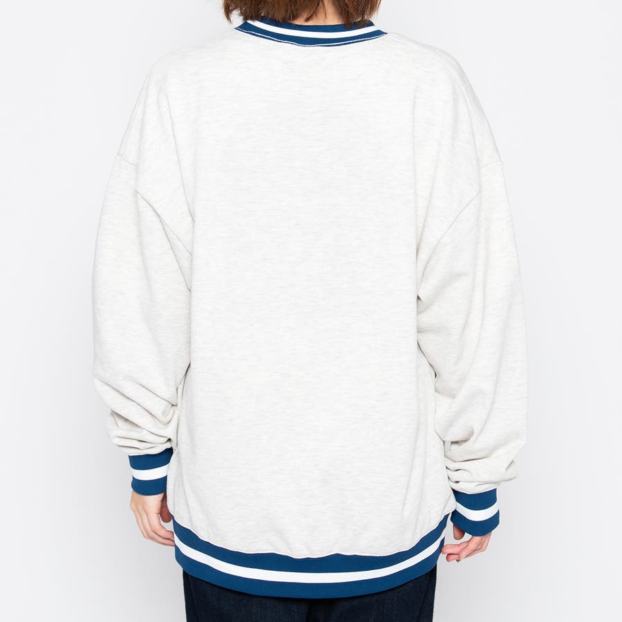 ・首元と裾のリブがワンポイントで目を惹くスウェット。
