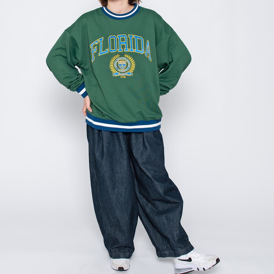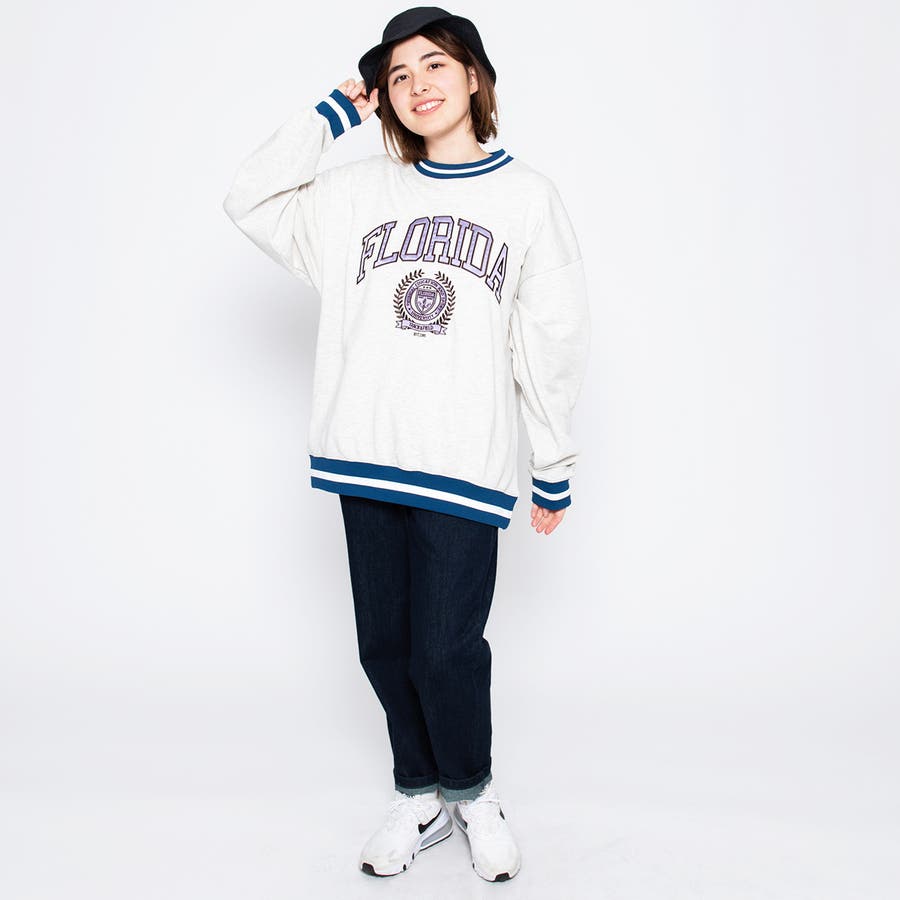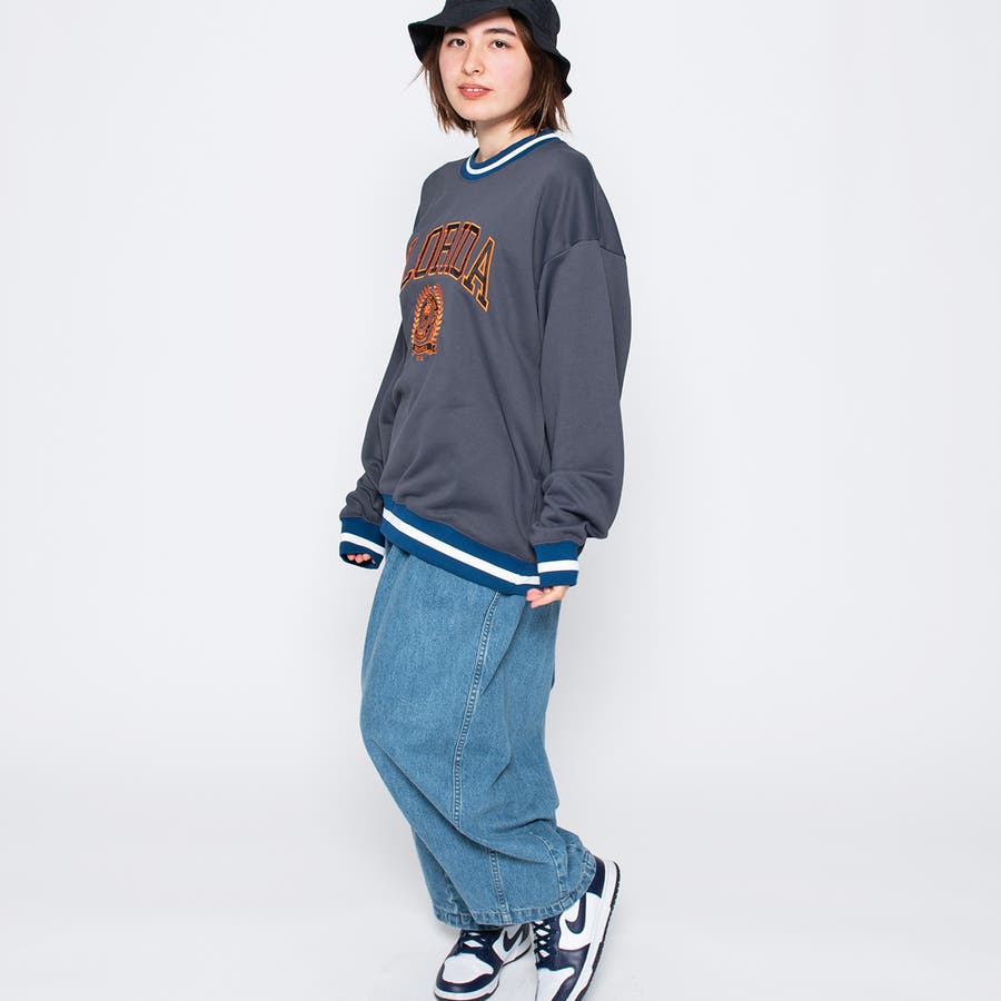 カレッジロゴスエット レディース カレッジロゴ カレッジロゴスウェット スエット オーバーサイズ ダンス 衣装 ストリート メンズ 古着風 トレーナー スウェット カジュアル かっこいい