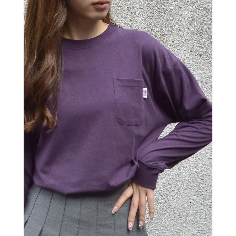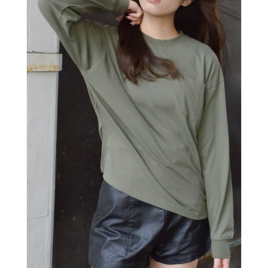 ロンT 無地 シンプル ベーシック ベージュ 白 黒 青 紫 カーキ カジュアル 部屋着 ルームウェア プチプラ ナチュラル ポケット
