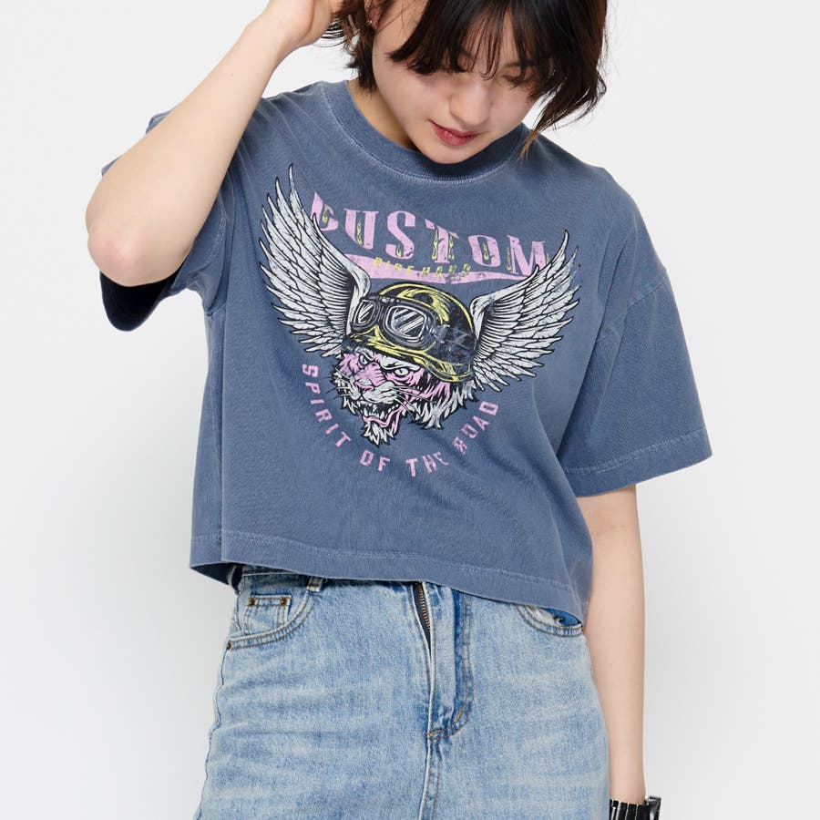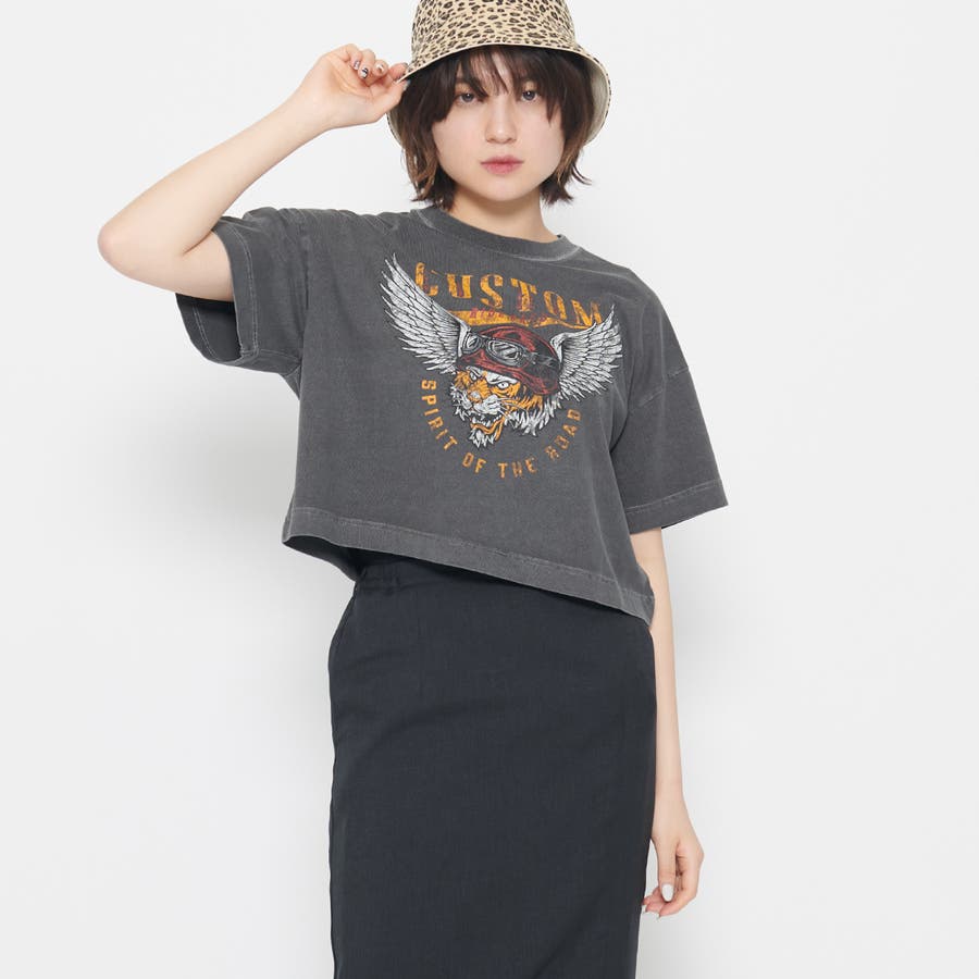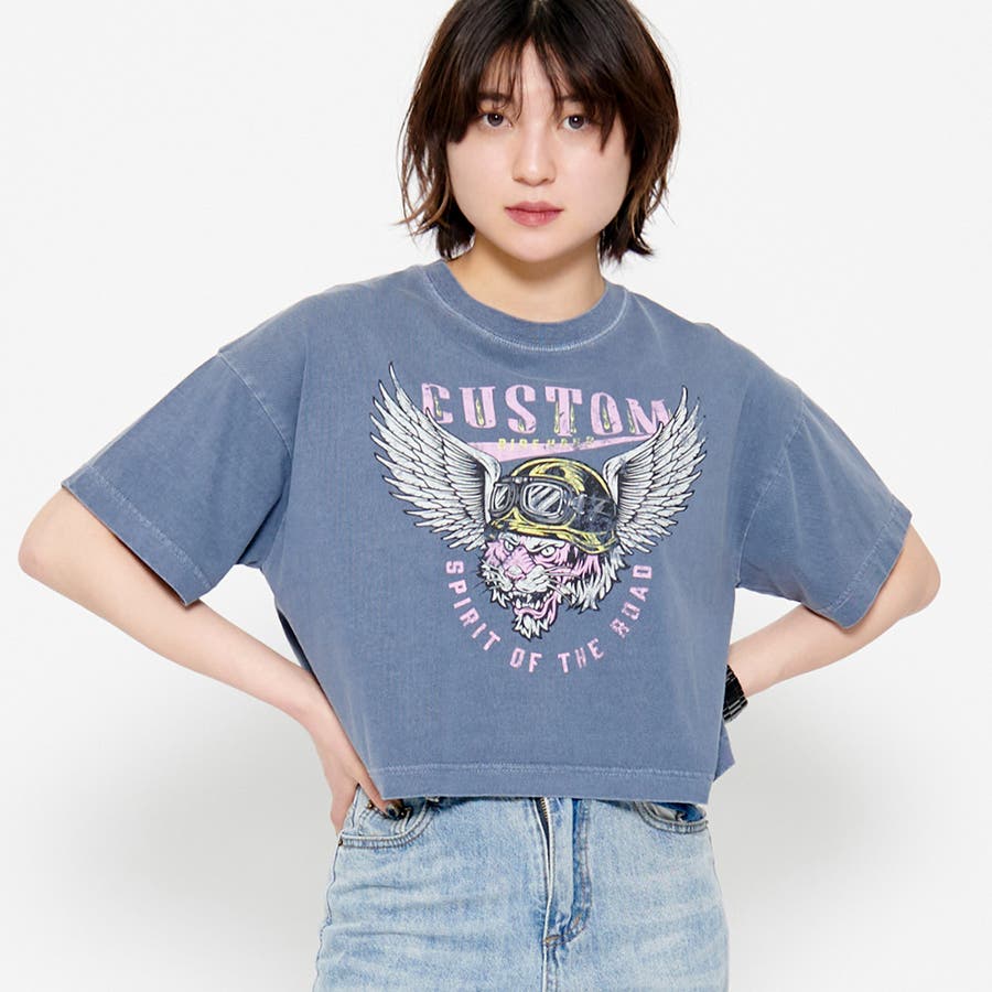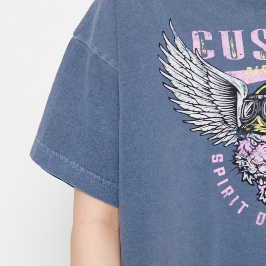CUSTOMプリント ショート丈ピグメントTシャツ