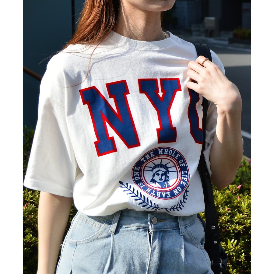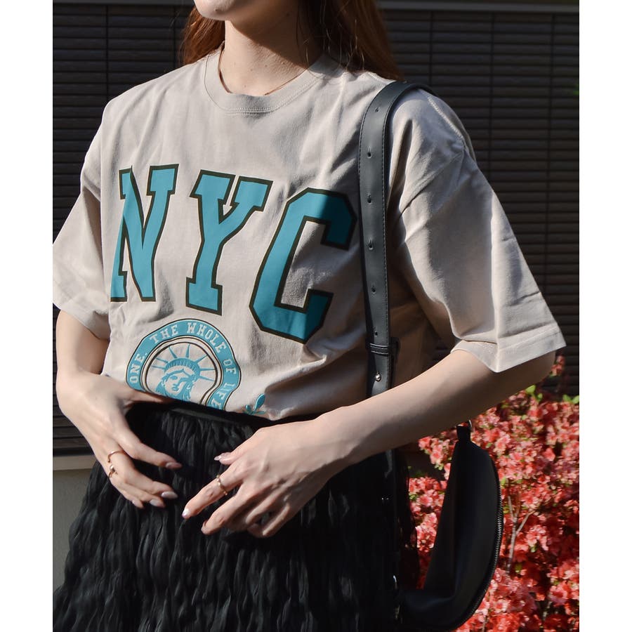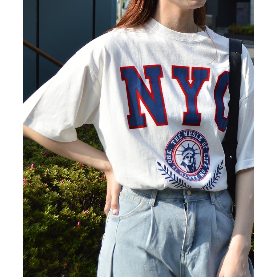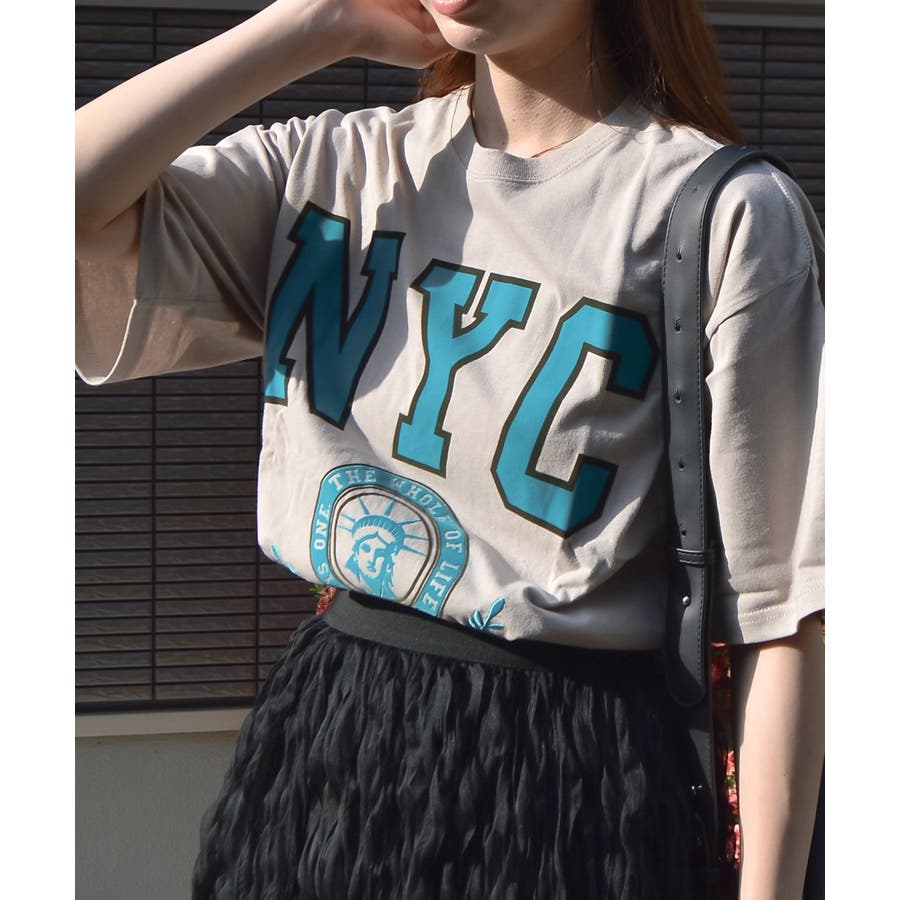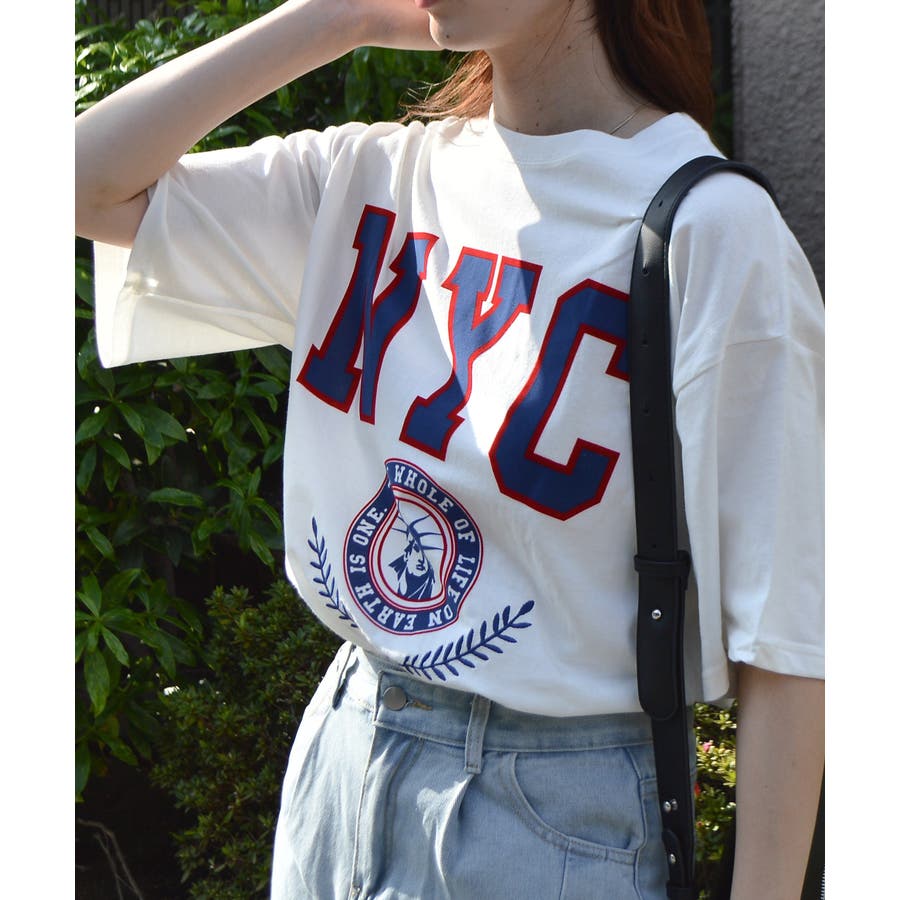 ・インパクトのあるプリントデザインが目を惹くTシャツ。