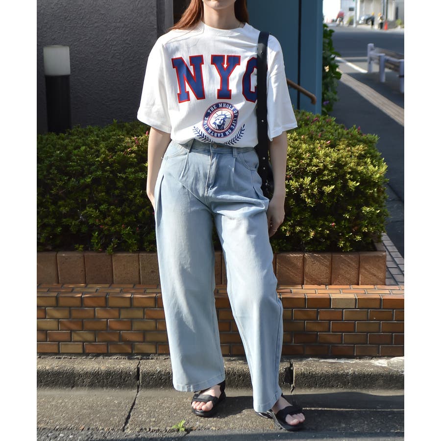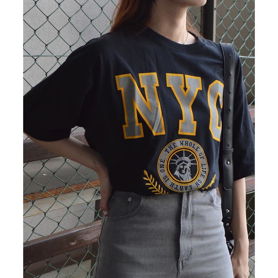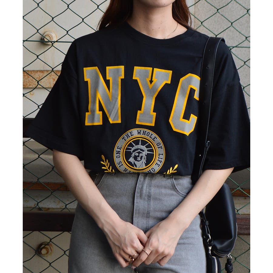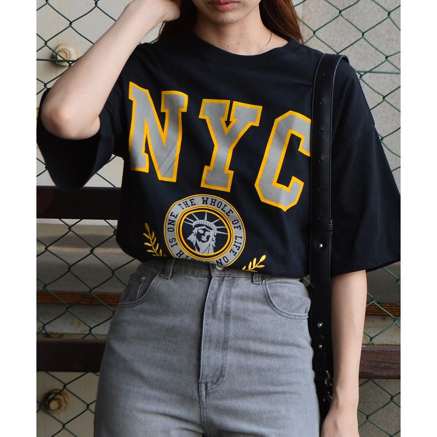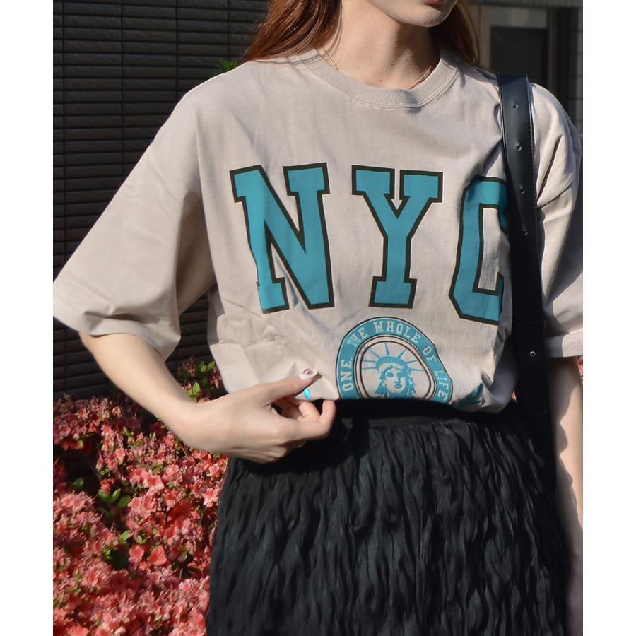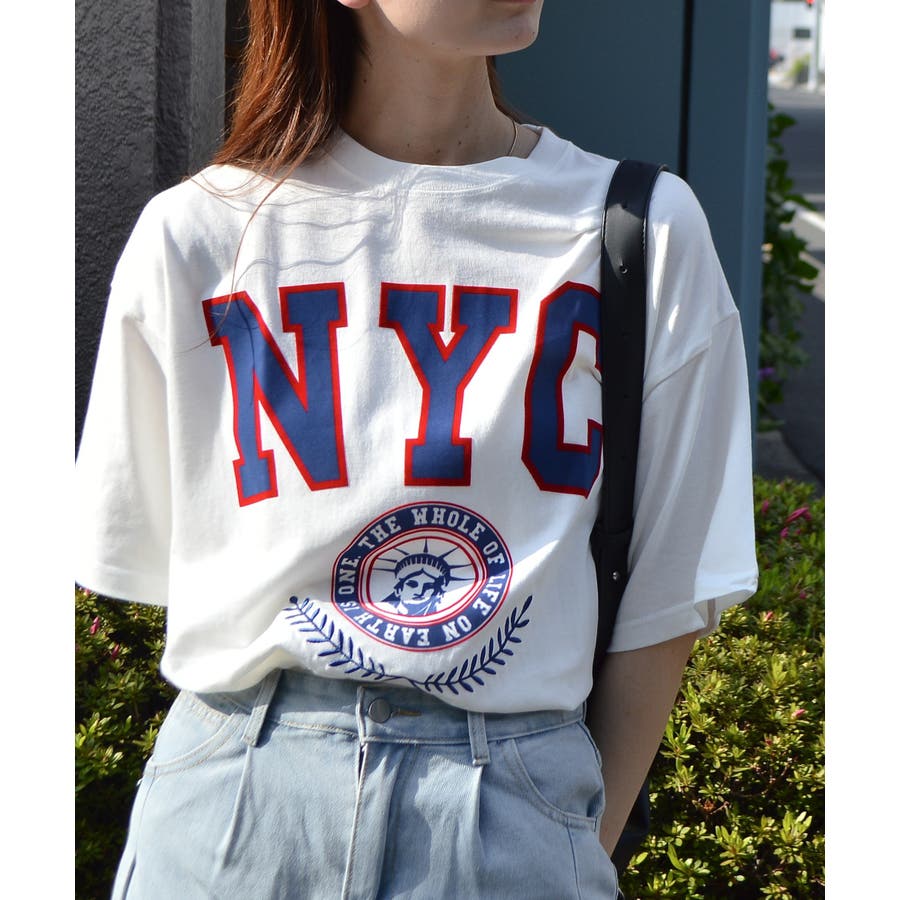 ・インパクトのあるプリントデザインが目を惹くTシャツ。
