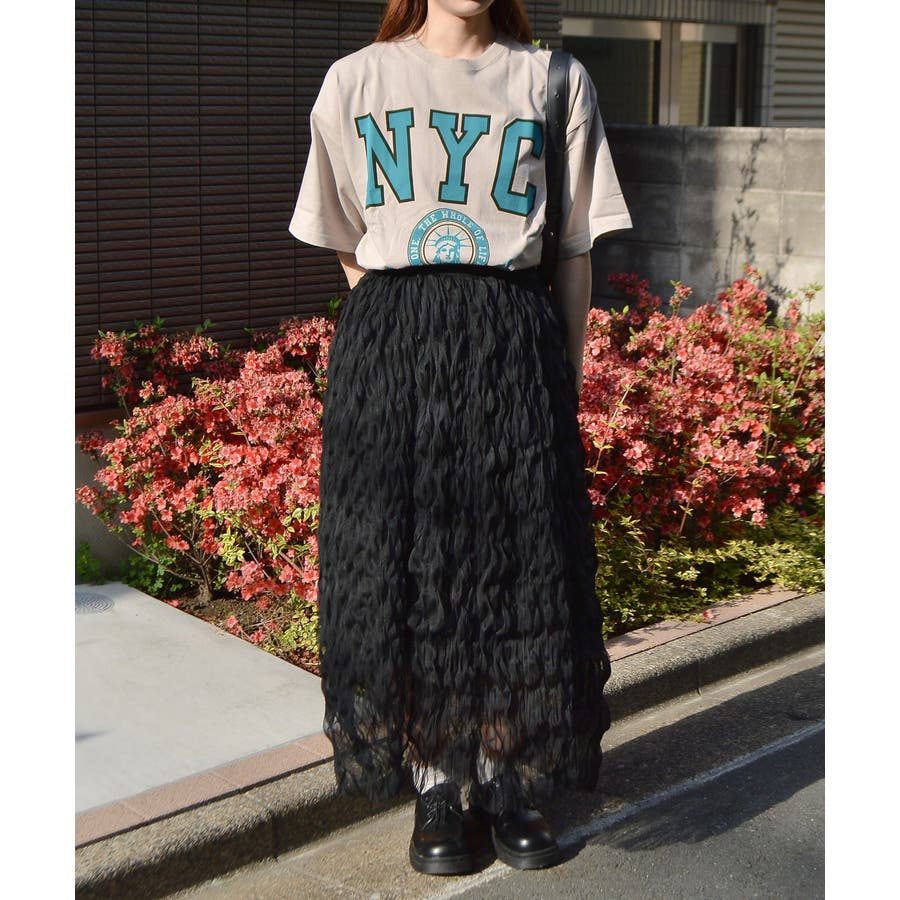 ・ロングスカートを合わせると大人カジュアルに仕上がります。