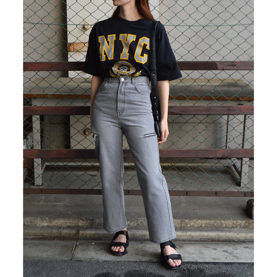 ・定番のデニムやスラックス、チノパンなどで合わせるとストリートカジュアル感強めのコーデが完成します!
